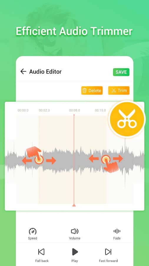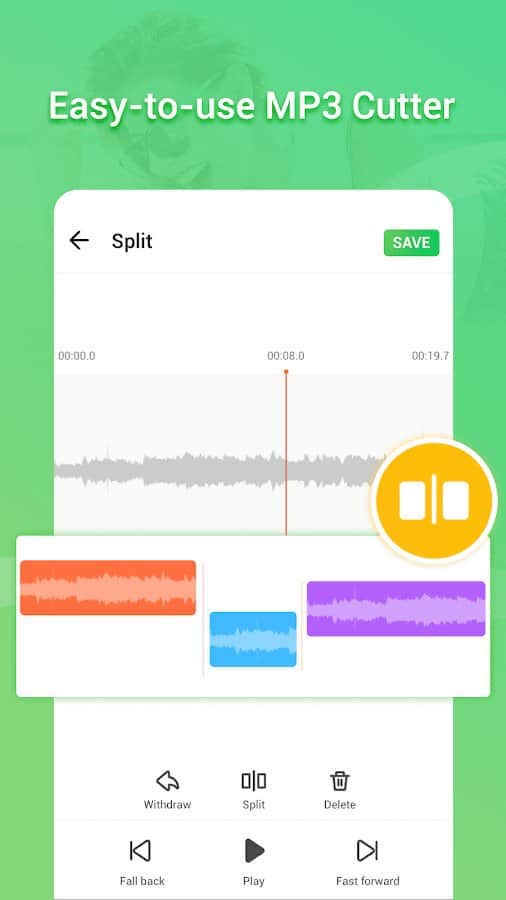 MP3-резак и создание рингтонов - С этим приложением вы можете больше не беспокоиться о том, что вам надо вырезать какую-то часть аудиозаписи или же её полностью отредактировать! Попробуйте воспользоваться каждой предложенной возможностью: слияние аудиодорожек, обрезка, добавление музыки или собственного звука, регулирование специальных настроек и создание рингтона. Оцените качество результатов, а затем выгрузите готовые записи в удобном для вас формате: MP3, AAC, FLAC, WAV, M4A, WMA, OGG или другом. Творите и вдохновляйтесь созданным!
