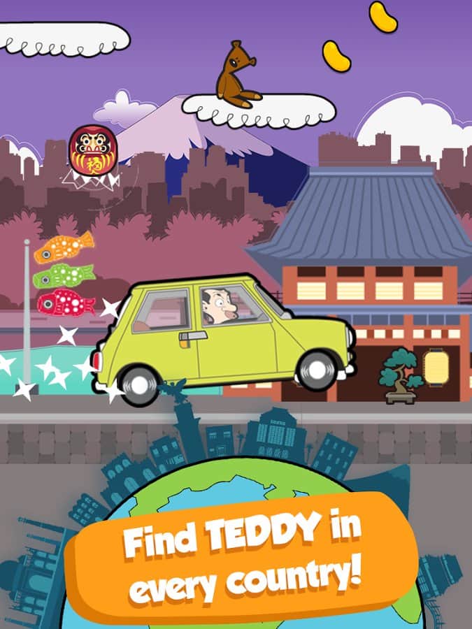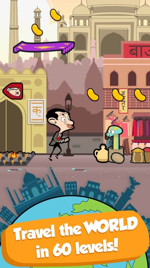 Mr Bean - Around the World – официальная игра на андроид, где вы будете помогать Мистеру Бину, убежать от своей домработницы. Он опят разозлил ее так, что она будет гнаться за ним через все страны мира. Бегайте, прыгайте, летайте на воздушных шарах и катайтесь на машине для того чтобы избежать наказания. Убегая от домохозяйки, не забудьте захватить своего медвежонка Тедди. Путешествуйте по разным странам, начиная от США и заканчивая Индией и Австралией, каждая страна порадует вас новыми фонами и уникальными препятствиями. Пройдите как можно больше контрольных точек и соберите все бобы по пути, а также участвуйте в мини-играх по поиску медведя Тедди, чтобы разблокировать все достижения и заполнить марками свой паспорт.