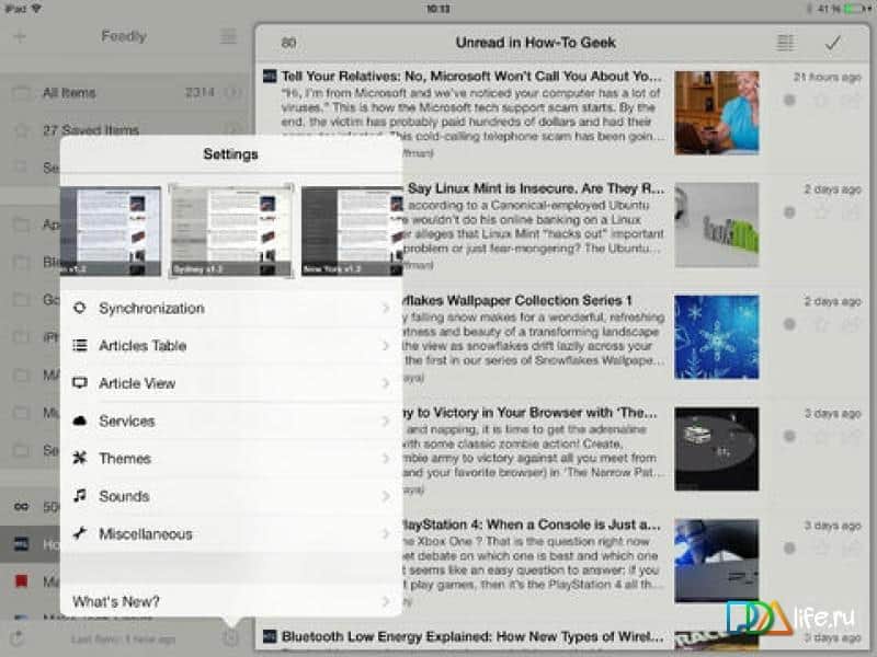 В настройках приложения можно найти несколько тем оформления, изменение размера шрифта, многострочные заголовки и многое другое. А слабовидящим людям может пригодится функция VoiceOver.