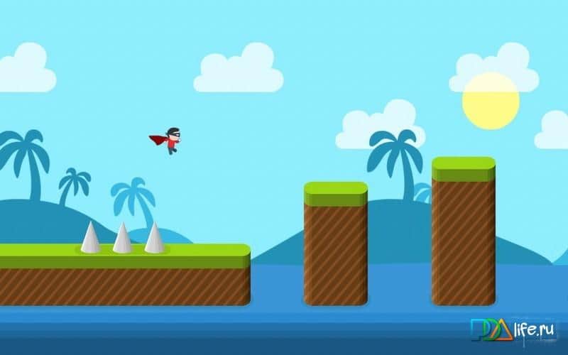 Mr Saltoman – управляйте новым супергероем, который прыгает через все препятствия. Ваш герой очень любит прыгать и делает это просто мастерски с двойными прыжками, сальто и головокружительными трюками. Прыгайте с платформы на платформу обходите все шипы и старайтесь не упасть в пропасть. Впереди вашего героя ждут многочисленные препятствия и различные локации, начиная от зеленых холмов и заканчивая неизвестными планетами. Попробуйте дойти до конца игры и поставить свой рекорд по скорости и ловкости. Весело проводите свое свободное время, играя в эту захватывающую игру.