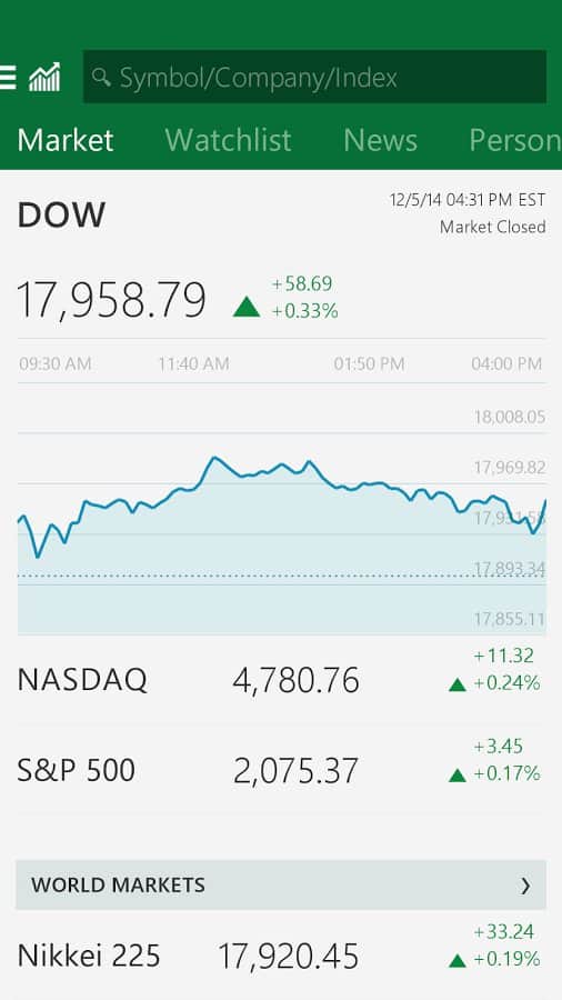 MSN Money- Stock Quotes & News - Собирайте новости о финансах со всего мира. Это приложение целый сборник полезных и интересных новостей начиная от изменения курса валют и заканчивая активами отдельных фирм и организаций. Так же в добавок к новостям со всего мира здесь есть несколько встроенных калькуляторов с помощью которых вы сможете подсчитать курсы или кредиты а так же конвертировать валюту. Простой и приятный интерфейс а так же большая база пользователей выводят это приложение на высокий уровень.