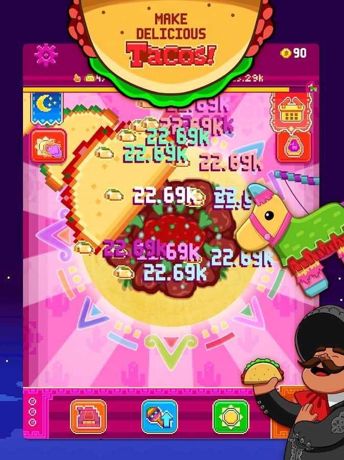 Станьте самым востребованным тако-шефом в игре-кликере Mucho Taco - idle tycoon, где нужно создавать вкуснейшее тако с любыми вкусами и дойти от простого продавца до владельца самого большого ресторана, где нет и шагу от количества покупателей. Сами выращивайте ингредиенты, чтобы повысить качество, нанимайте лучших поваров и делайте их счастливыми, приобретайте новые миры для ресторанов и тоже захватите их, получайте маленькие и большие достижения, удовлетворяйте клиентов и наслаждайтесь их лицами с улыбкой.