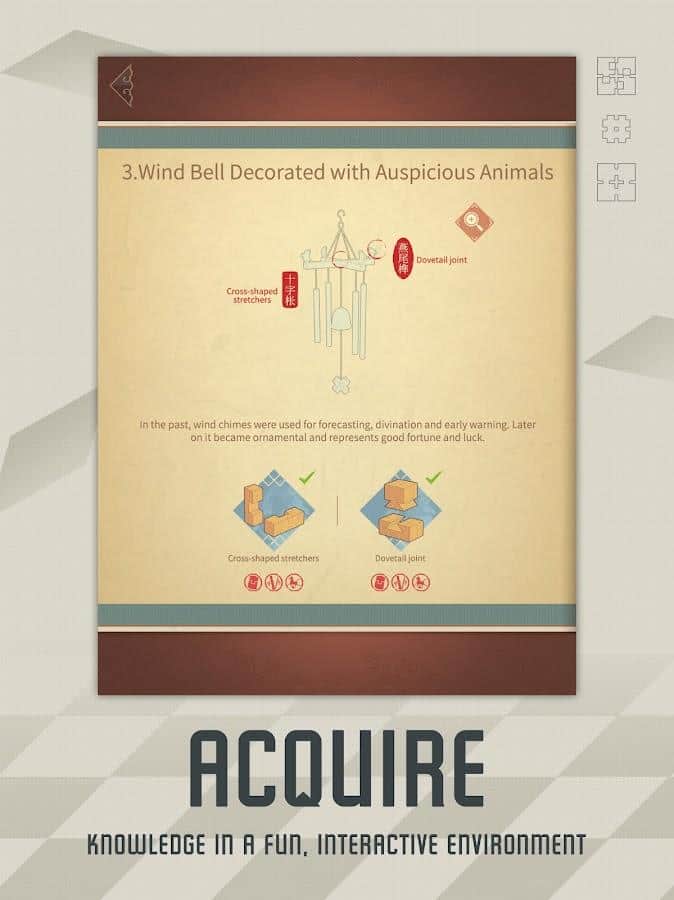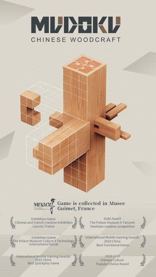Mudoku: Chinese Woodcraft - Решайте занимательные головоломки, которые были показаны даже в музее! Создавайте и соединяйте определенные фигуры из дерева, детально изучая историю развития Китайской культуры. Делитесь своими сделанными работами с другими игроками, попробовав режим «Испытание». Получайте новые знания и сразу же применяйте их на практике, улучшая собственные возможности. Используйте всего несколько функций, где расположены самые необходимые кнопки с командами: добавить предмет, удалить его, нажать на предмет и прочее.