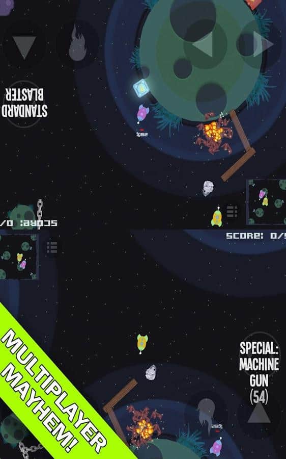 MUKS - многопользовательская игра на андроид, где у вас будете возможность играть со своими друзьями или в одиночку противостоять Al. Путешествуйте по подземным лабиринтам заброшенных планет и сражайтесь против своих друзей в режиме компании. У вас в арсенале будет большой выбор оружия и боеприпасов, которое помогут вам разрушать окружающие детали или взорвать целые планеты и изменить ход игры.