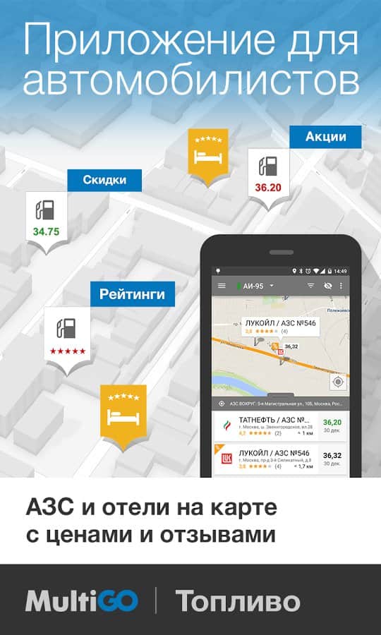 MultiGO ТОПЛИВО – отличное приложение от разработчика ElectroUnion ltd., которое будет весьма полезным для водителей наземного вида транспорта. MultiGO представляет собой ежедневно обновляемую базу данных об АЗС. Здесь вы сможете найти ближайшую автозаправку, почитать отзывы о ней, ознакомится с ценами, как на бензин, так и на дизтопливо, газ. Смело отправляйтесь в путь предварительно скачав и установив данное приложение.