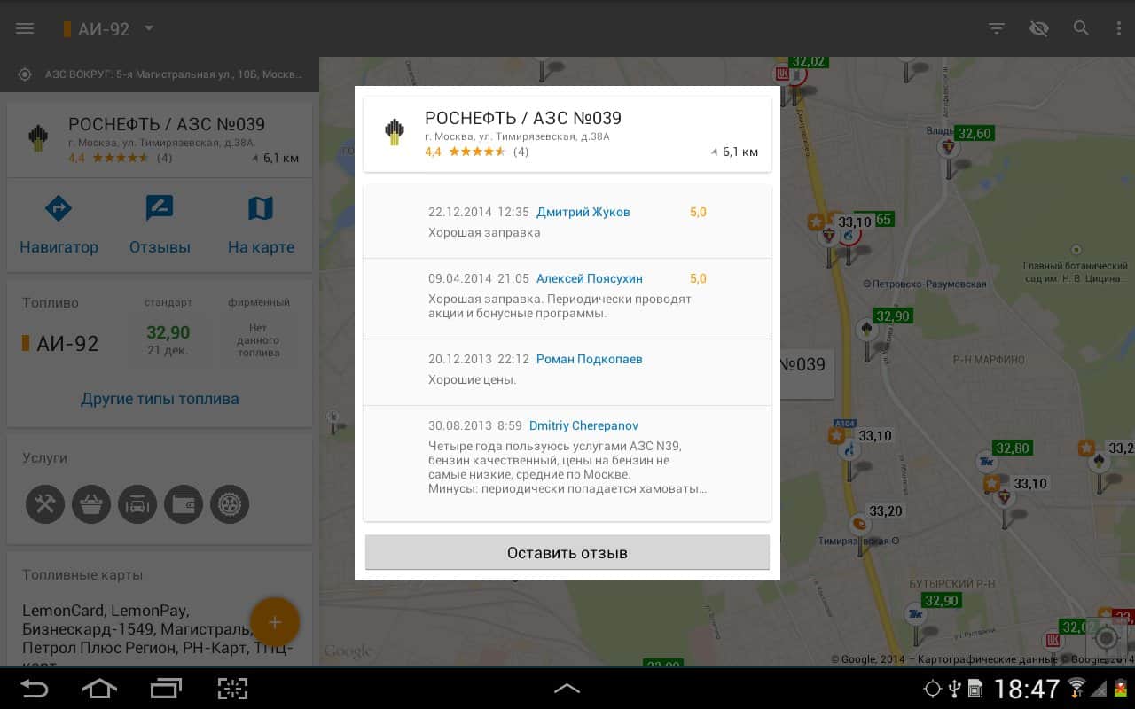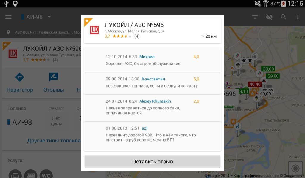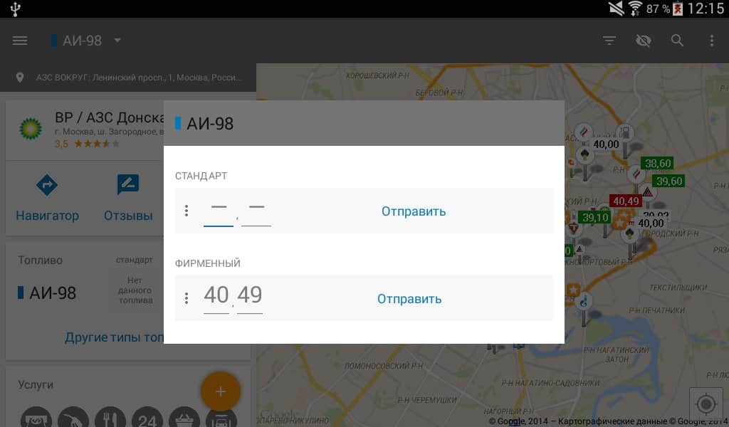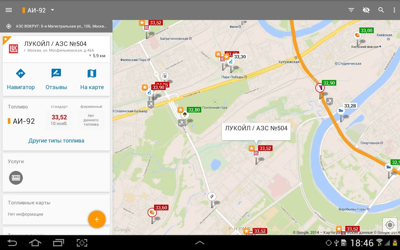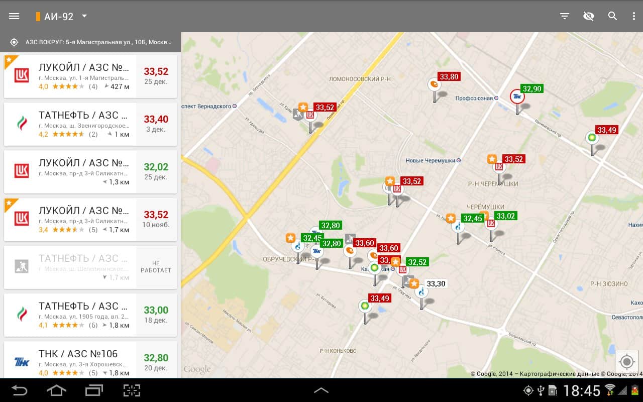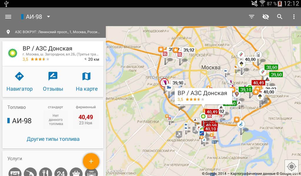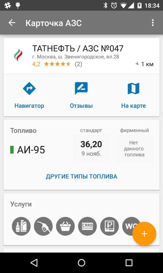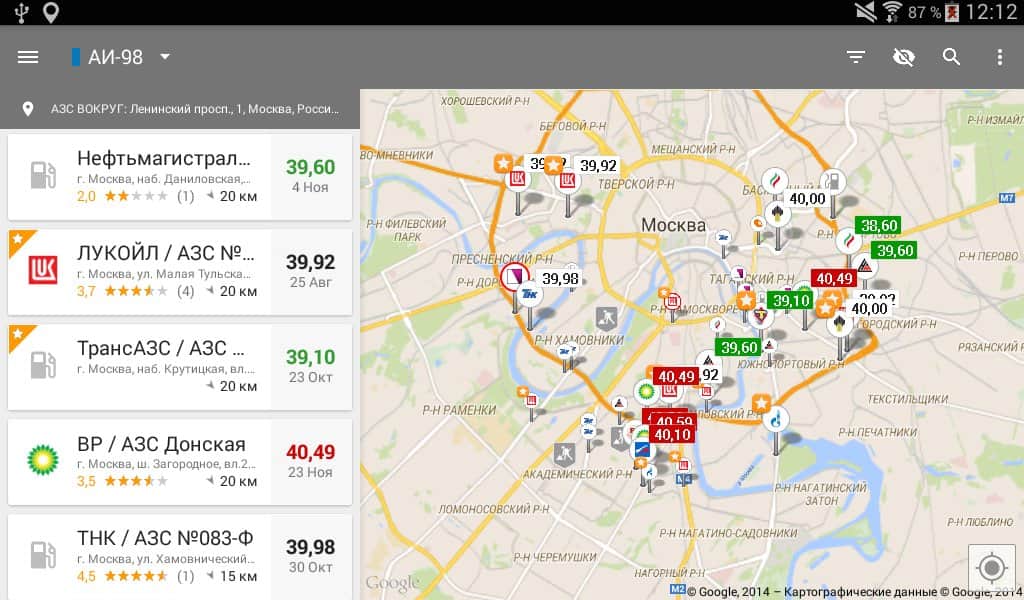 - Приложение позволяет искать АЗС относительно любого адреса. Теперь можно легко сориентироваться в диапазоне цен на бензин в любом городе или выручить друга, у которого опустел бак в незнакомом месте.