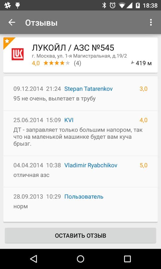 - Любой зарегистрированный пользователь может участвовать в мониторинге цен на топливо, добавлять новые АЗС или сообщать об изменениях данных об АЗС. Также, для каждой АЗС есть возможность оставить комментарий по качеству обслуживания или бензина.