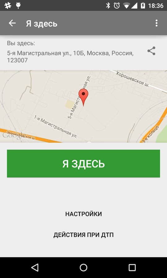 - C помощью функции "Я здесь" вы сможете передать свои координаты по SMS или почте.