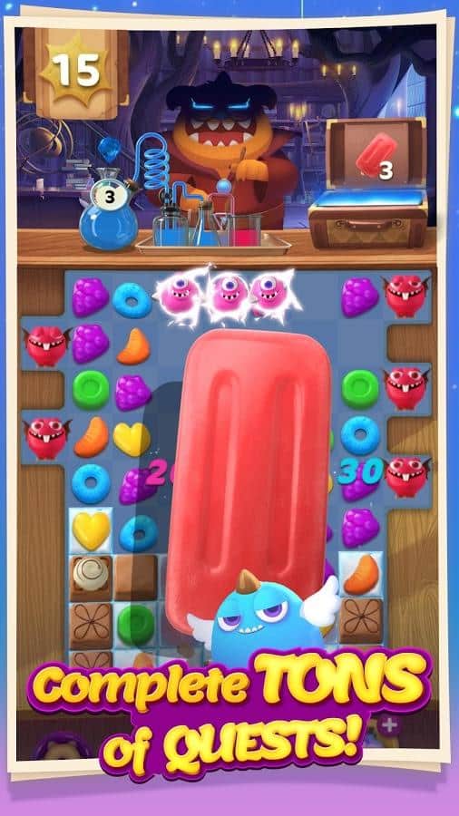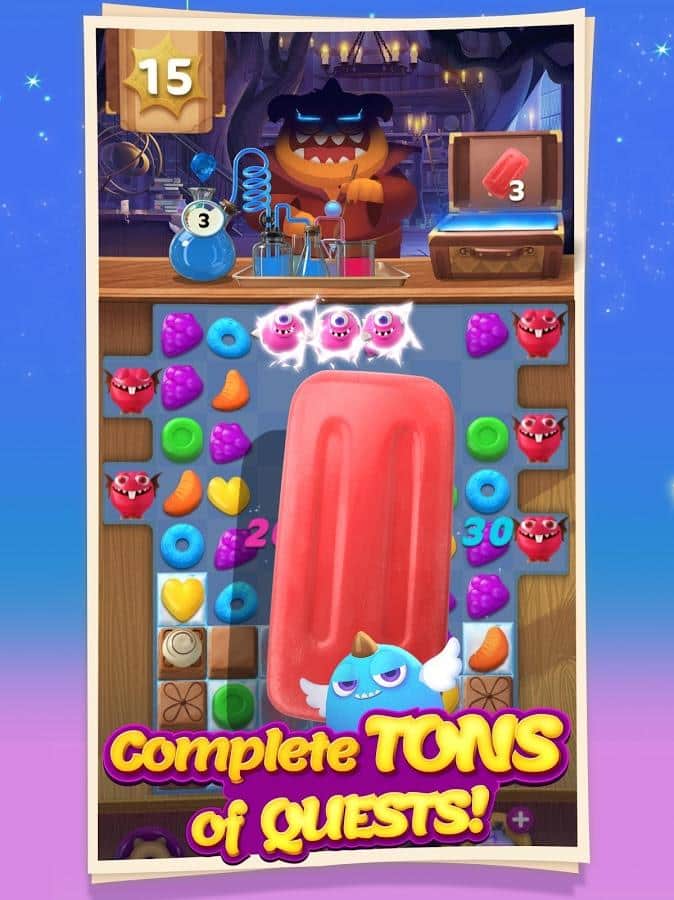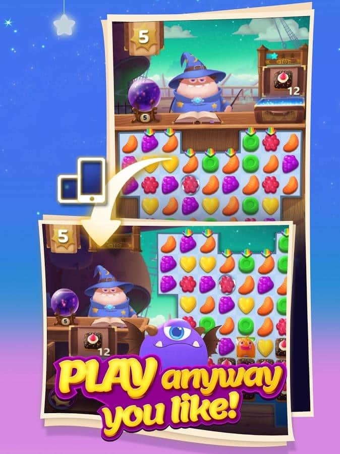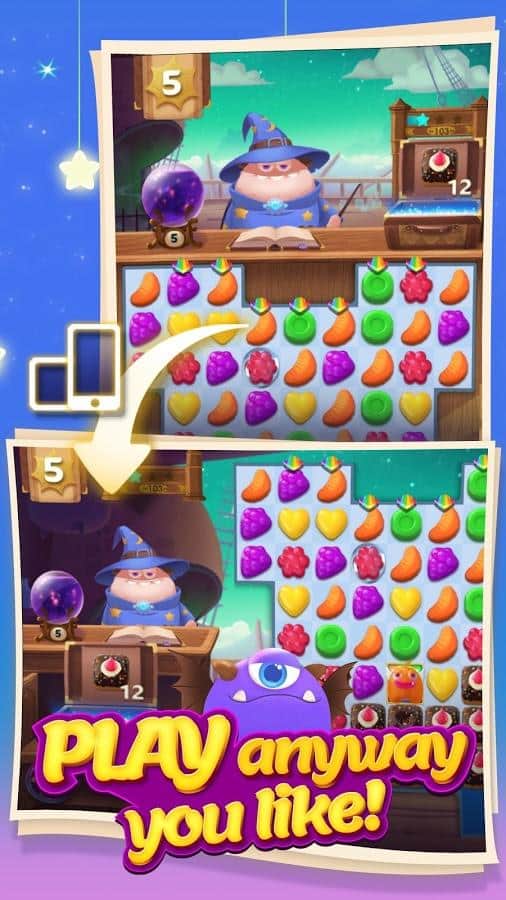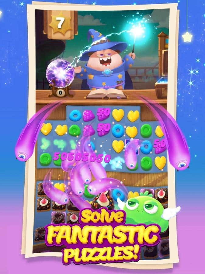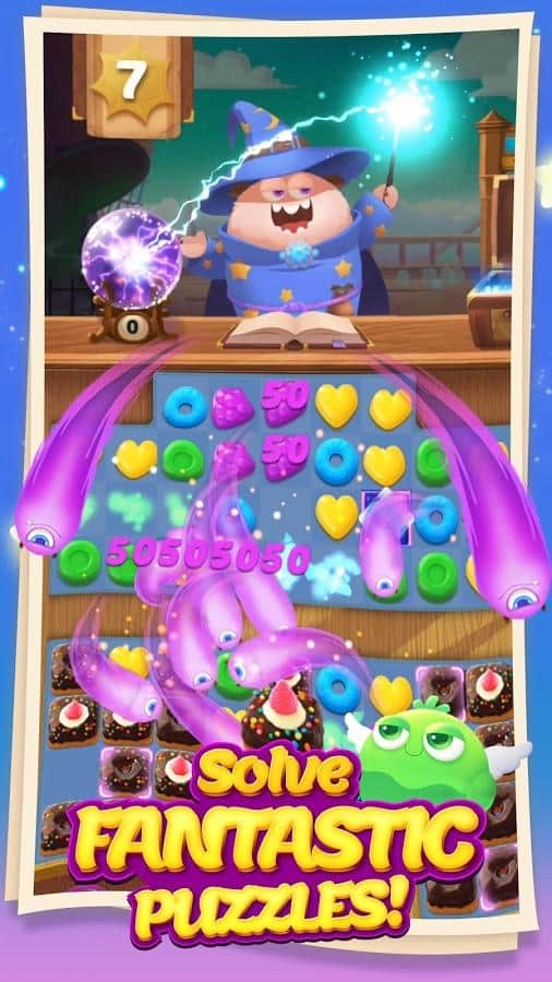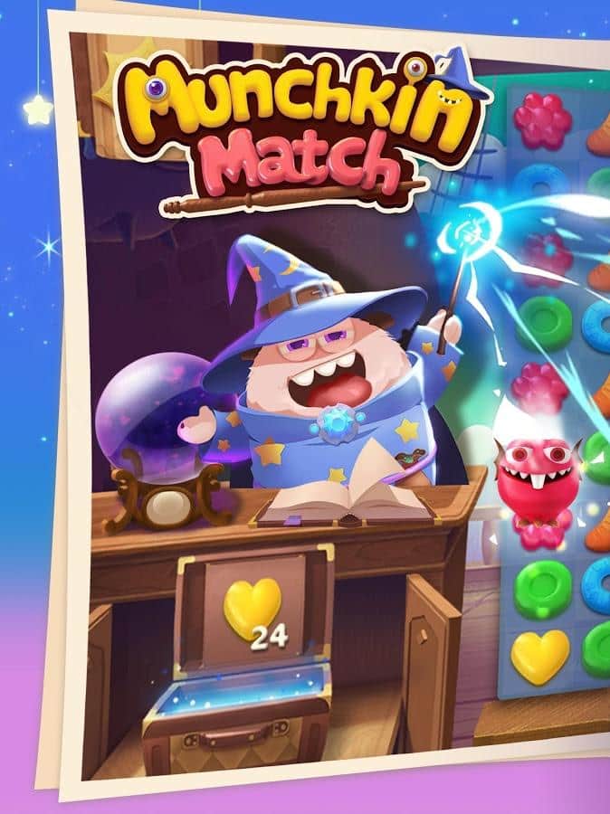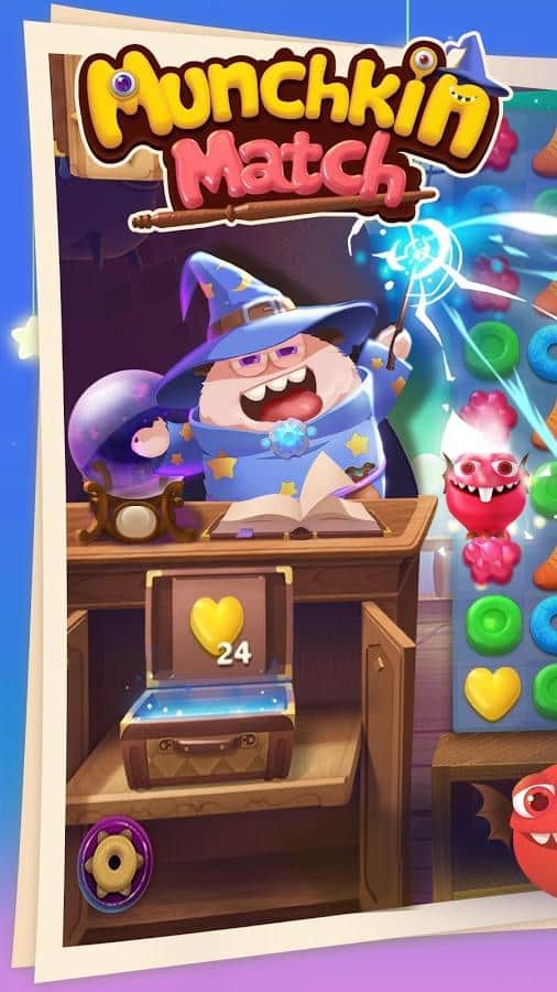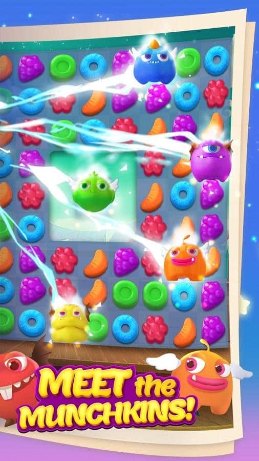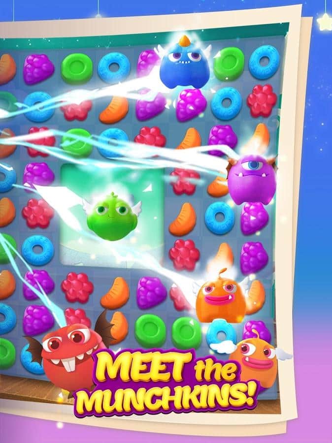 Munchkin Match – игра на андроид, из жанра три в ряд где вы будете помогать волшебнику составлять ряды из сладостей. В этой игре вашей главной задачей будет составлять ряды из фруктов, конфет и сладостей. Путешествуйте по сказочному миру и применяйте в деле все свои логические и магические способности. Составляйте как можно более длинные ряды из сладостей и взрывайте их, очищая место для других объектов. Применяйте многочисленные бонусы и усиления и как можно быстрее проходите сложные уровни игры. Поднимайтесь все выше в таблице лидеров и соревнуйтесь с друзьями за лучшие результаты.