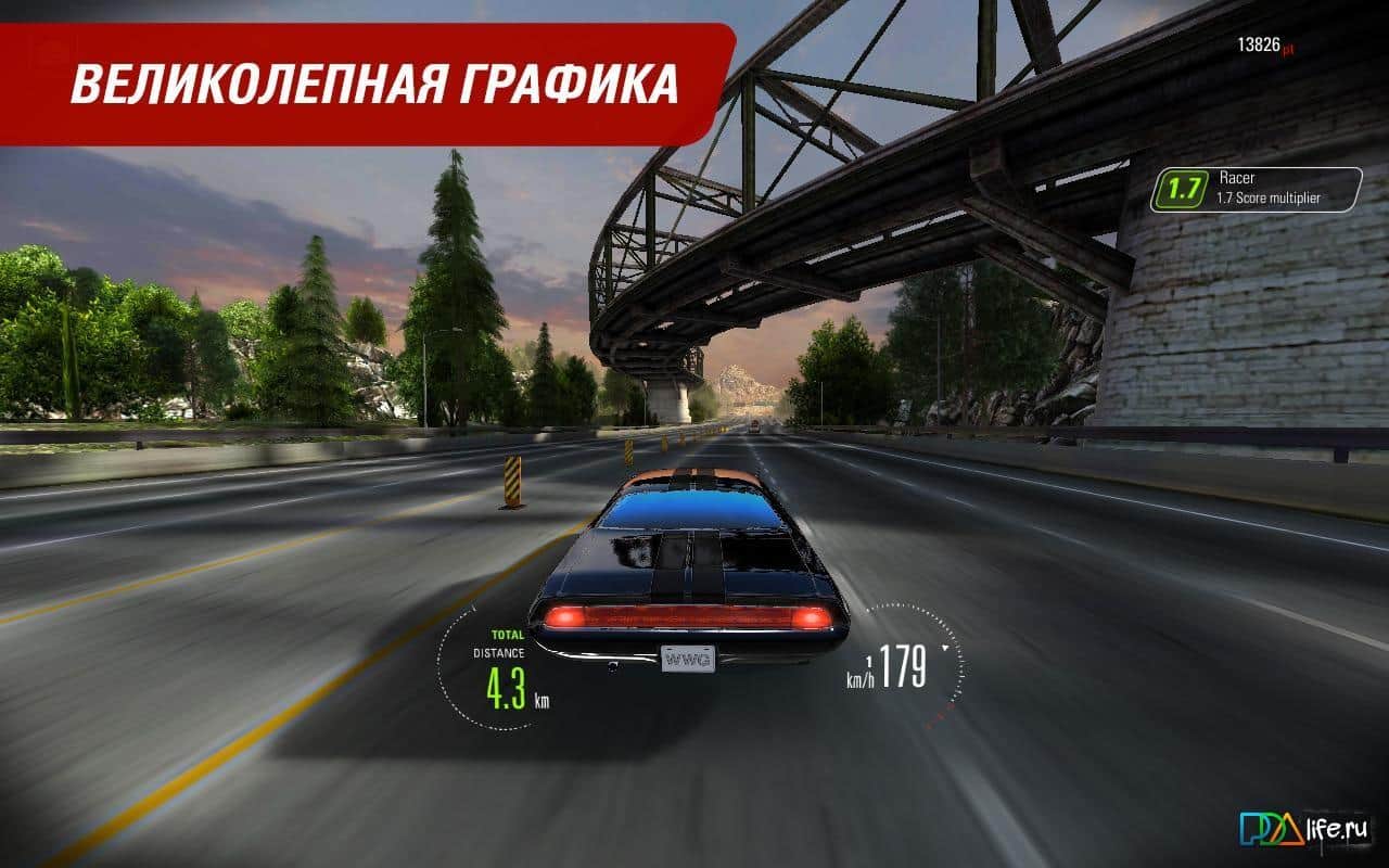 Графика: шикарная. Я серьёзно. Она просто прекрасна. Геймплей: ранер, но интересный: есть так и свободная езда так и челленджи. Вообщем геймплей интересен. Управление: удобное, по нажатию по экрану. Надоело наклонять телефон! Но вот самих масл каров мало. Да и не лицензированы. Мне бы хотелось видеть в игре того же Плимут Барракуда, мой любимый Файерберд да и Камаро. И как же без чарджера! Кстати машины тут не лицензированы. Не минус, просто для галочки.