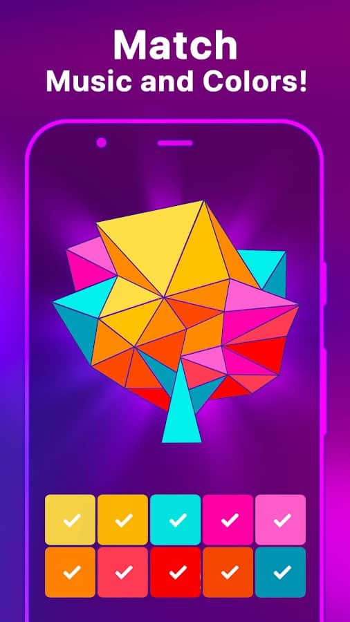 Книжка-раскраска Music Colors — Happy Colors даст вам возможность расслабиться и отпустить нервное напряжение. Нажав на объект раскраски, вы услышите приятную спокойную музыку, которая позволит вам насладиться раскрашиванием красивых орнаментов, картин в пиксельной графике. После того, как изображение будет готово, вы сможете поделиться им с друзьями. Выбирайте любой цвет из палитры, раскрашивайте цифрами и создавайте свой уникальный шедевр без применения карандашей и бумаги в простом формате.