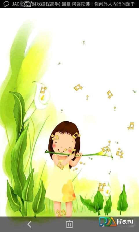 Music Life Live Wallpaper – весьма приятные и милые живые обои от разработчика 3dbizhi Inc. Малышка играет на цветке, словно на флейте, среди высоких трав. Проведите по экрану, чтоб создать собственную музыку. Данные обои можно использовать и с другими обоями, переключаясь между ними. Обои Music Life выглядят красиво и не напрягающе. Приятного.
