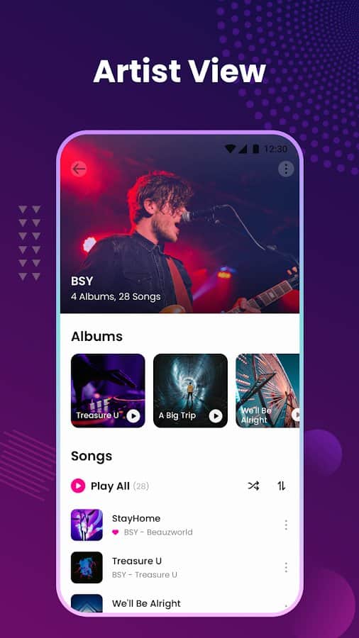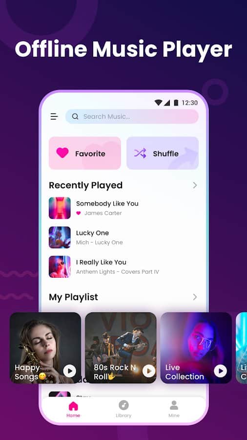 Воспроизводить музыку автономном режиме без прерываний, ухудшения качества звучания, с удобными настройками и фильтрами можно в приложении Music Player & MP3 Player.
