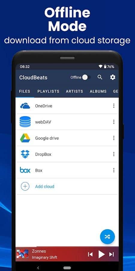 Music Player, Cloud MP3 player - Треки на различные тематики можно собрать в одном месте и прослушивать их там, пока точно не надоест! Синхронизируйте ваши альбомы с телефоном и всегда имейте доступ к музыке, чтобы прослушивать её во всех местах, где вы только побываете. Загрузите необходимую музыку с помощью разных приложений и создайте определенные альбомы, в какие будете сохранять музыку по похожих характеристиках. Быстро находите некоторые треки благодаря поиску, или же используйте дополнительные функции фильтра. Слушайте и получайте удовольствие!