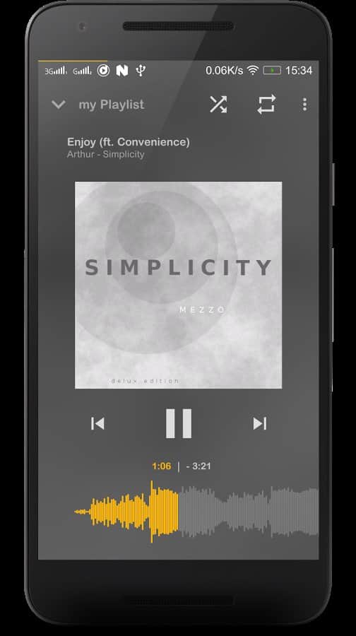 Music Player Mezzo - Ещё никогда ваш плеер не был таким практичным и красивым. Это приложение вобрало в себя всё лучшее от других музыкальных проигрывателей. Удобный, простой и красивый интерфейс а так же множество точных настроек делают его весьма практичным. А ещё кнопка которой так не хватало, и с помощью которой мелодия что играет в данный момент, будет установлена на звонок.