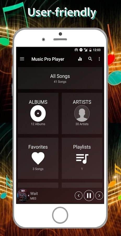 Music Pro Player - одно из лучших приложений для прослушивания музыки Android. Используя Music Pro Player, вы можете слушать все типы аудио файлов, mp3, wav, ogg и другие. С этим проигрывателем вы легко найдете всю музыку в своем телефоне! Наслаждайтесь множеством интересных функций, чтобы настроить способ прослушивания музыки.
