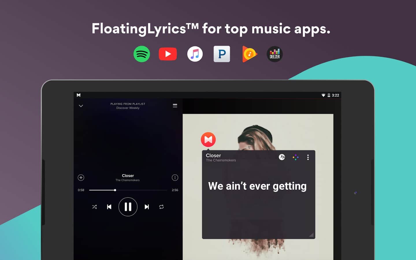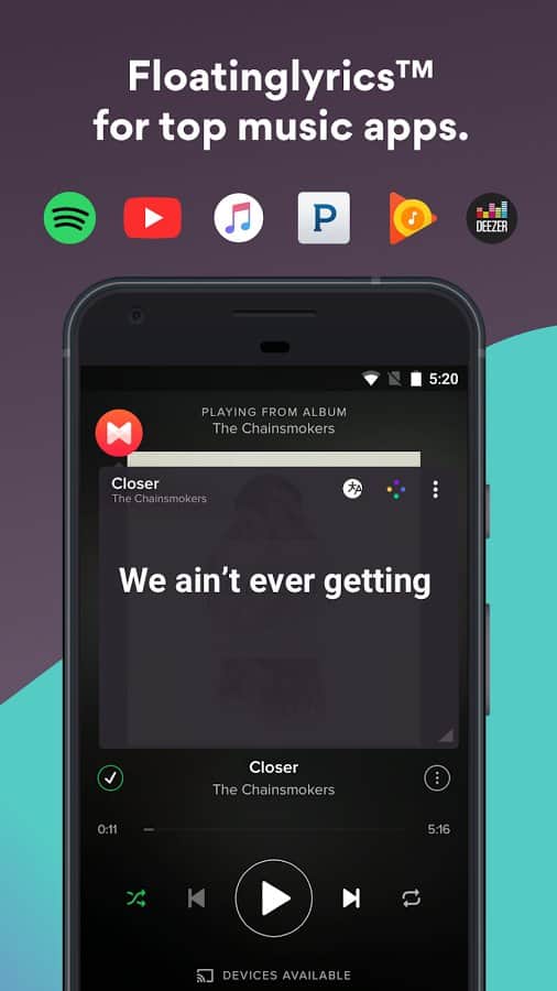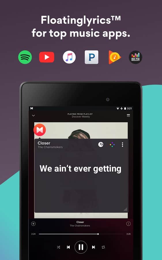 Хороший вариант для меломанов, ведь совмещает в себе простенький плеер, большой каталог текстов и поиск композиции по фрагменту. Особенно интересна здесь функция FloatingLyrics: интересующий текст будет синхронизирован с играющей музыкой, причем не только из встроенного плеера, но и сторонних, вроде Spotify или Play Music — получается такое себе караоке. А еще это неплохой вариант для изучения иностранных языков. Касаемо встроенного плеера, он здесь предельно простой, как и весь интерфейс приложения в целом. Поиск музыки опирается на сервис Gracenote и тоже работает неплохо.