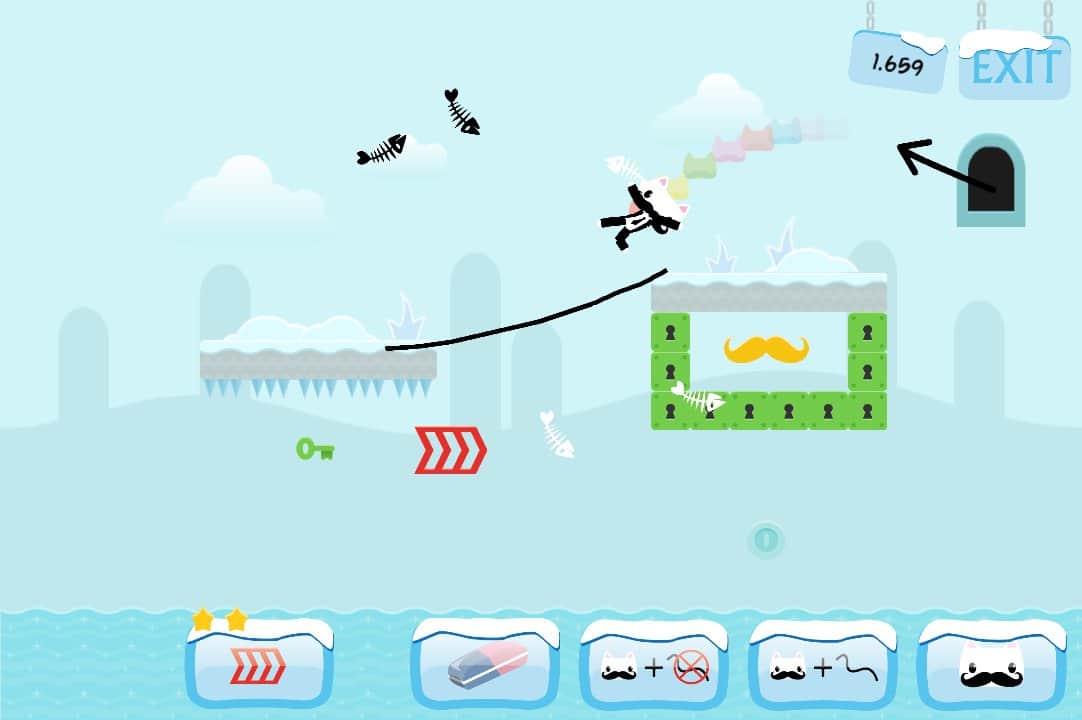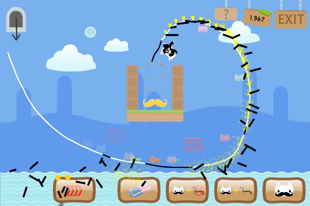 Mustache Slider - игра на андроид, в которой вам предстоит управлять падающей кошкой. Рисуйте линию падения кошки так, чтобы она по пути собрала все бонусы и добралась до желтых усов. Пройдите все 40 захватывающих уровня в трех различных мирах и попробуйте разблокировать дополнительные любопытные функции для своей кошки. Играйте сами и со своими друзьями и получайте удовольствие от отличной физики и яркой графики.