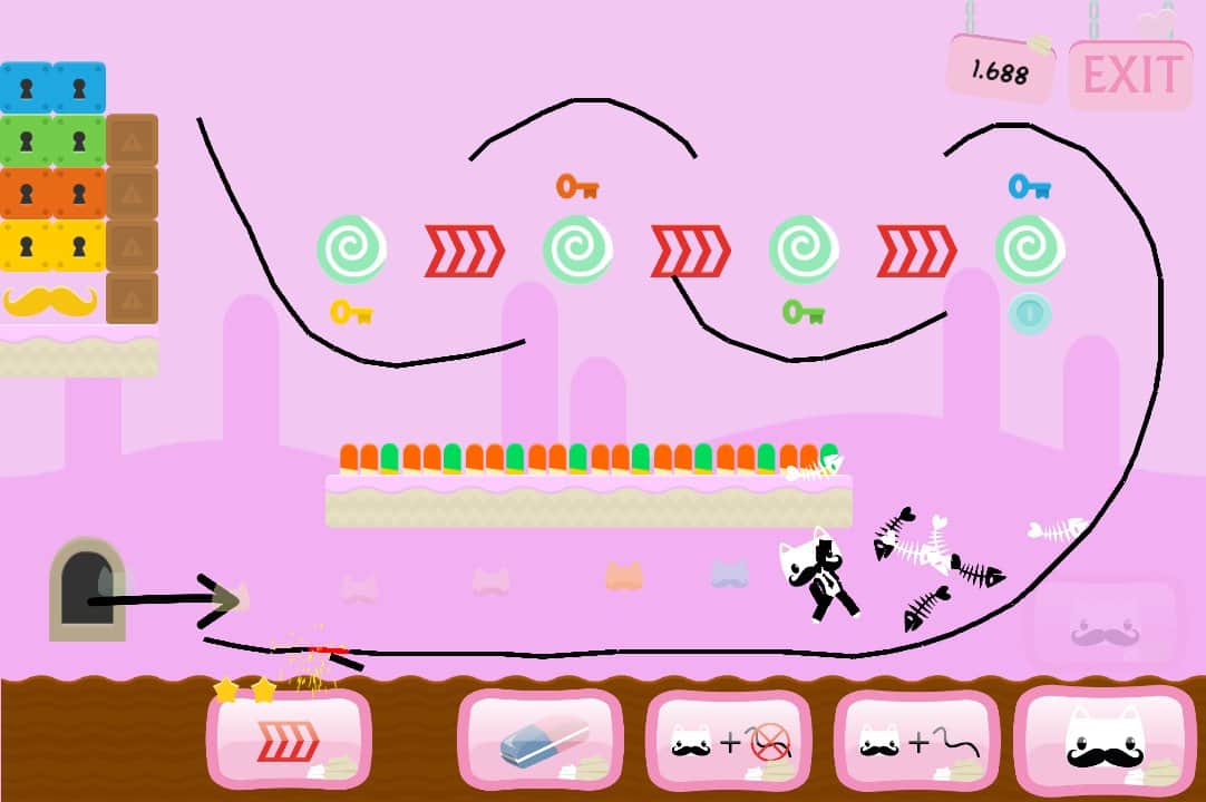 Порой самые безумные идеи получаются самыми интересными.Например эта игра.Увидев описание-Помогите кошке собрать усы,я подумал-О боже что за бред?!Но спустя минут 15 все же решил скачать и,знаете,не пожалел.Несмотря на дикую идею,игра получилась очень необычной ,интересной и затягивающей головоломкой.Физика,управление,звук,графика-радует.Можно правда было добавить ещё красочности.В общем играйте,вы не пожалеете.