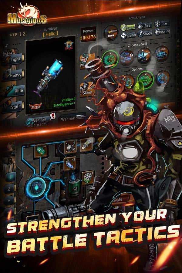 Mutagious – RPG на андроид, где вы попадете в постапокалиптический мир и будете защищать людской род от ужасных монстров. Мир захвачен монстрами и мутантами и вашей задачей в этой игре будет защитить оставшихся в живых людей, обитающих в пещерах от уничтожения. Выбирайте себе героя из представленных в игре, каждый из которых обладает уникальными способностями и имеет свой класс. Перемещайтесь по мрачным подземельям и пустыням где обитают монстры и уничтожайте их, собирая после боя отличную добычу. По ходу игры не забывайте улучшать своего героя, добавляя ему новых умений, оружие и одевая его в различные костюмы. Объединяйте свои силы с друзьями и вступайте в неравный бой с монстрами.