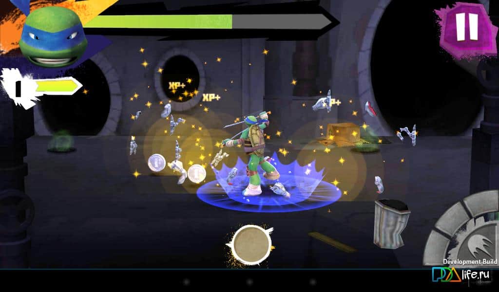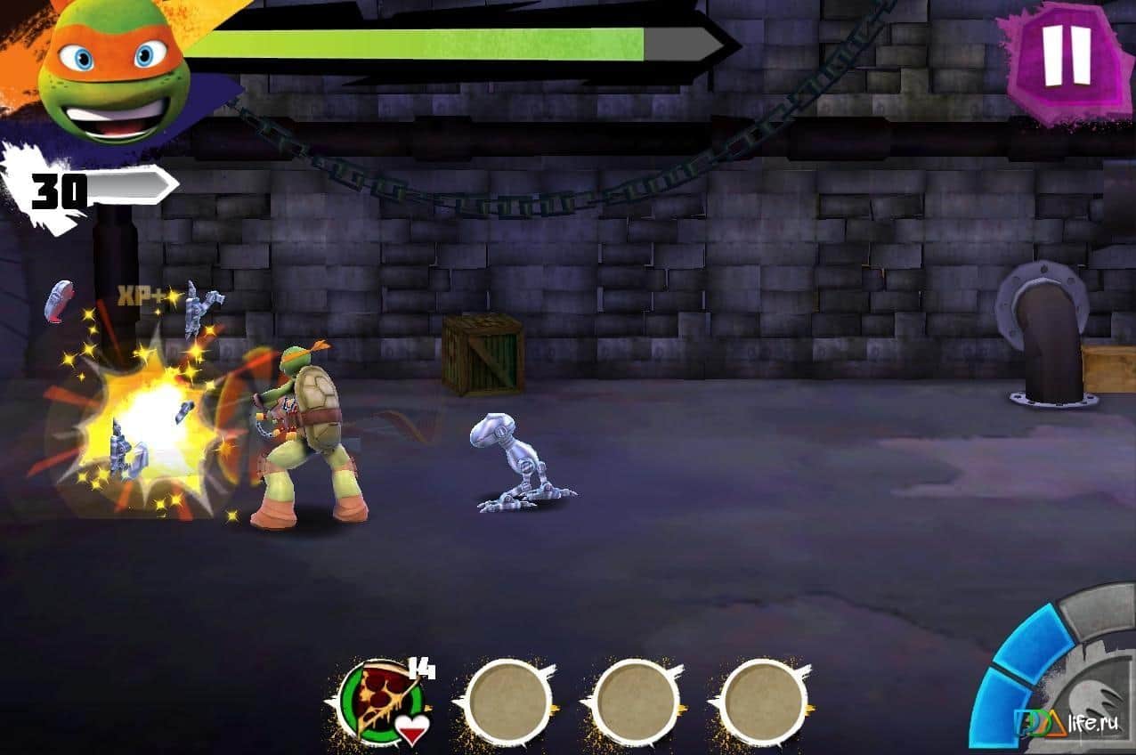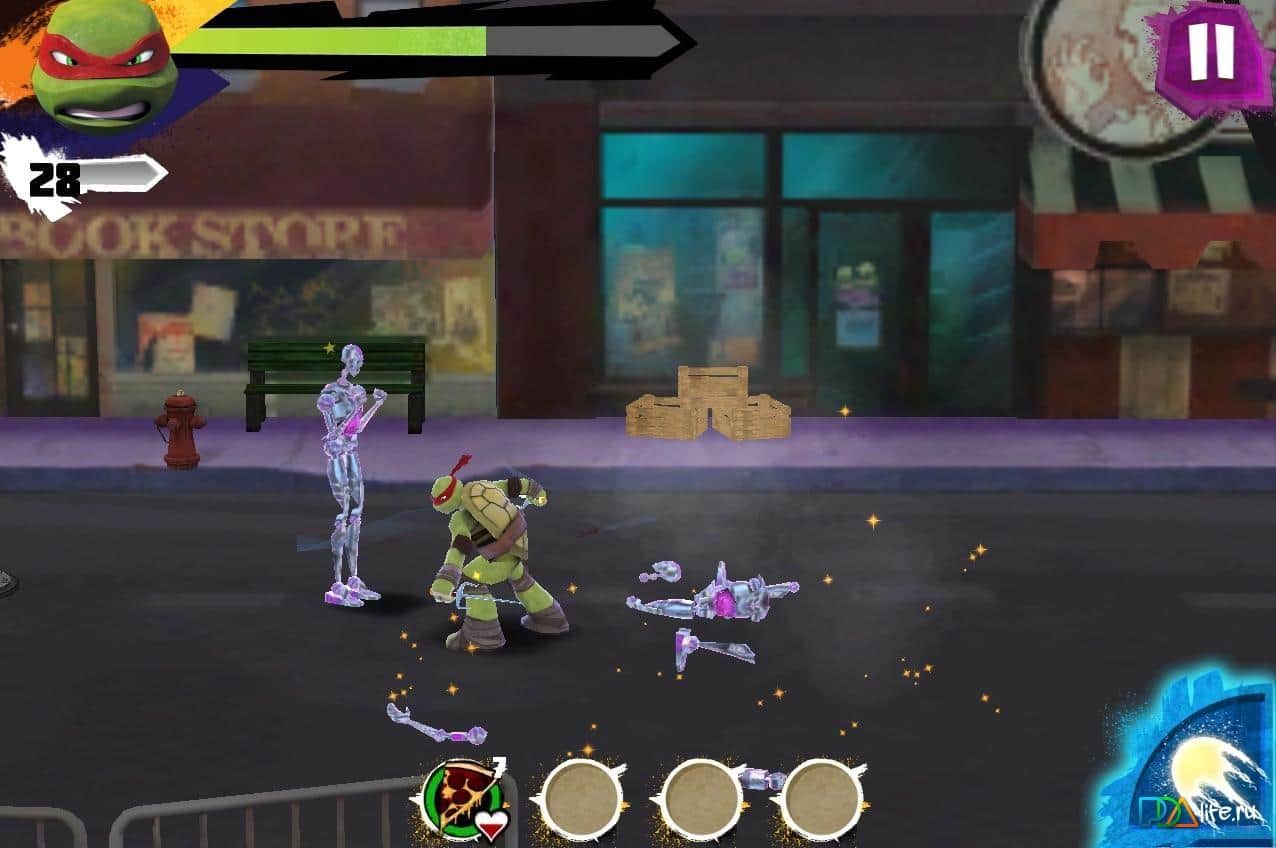 Mutant Rumble - увлекательная аркада-экшен для андроид о приключениях знаменитых героев - черепашек-ниндзя. Перед вами не одна локация с насыщенным боевым геймплеем. Самое главное - это вовремя и прицельно наносить удары! Для начала вам доступен только Микеланджело, но по мере продвижения по уровням, вы сможете разблокировать и остальных представителей семейства черепашек! Ну что ж - файтинг начинается - спешите избавить улицы от всяких негодяев и пройти все уровни с высоко поднятой головой!