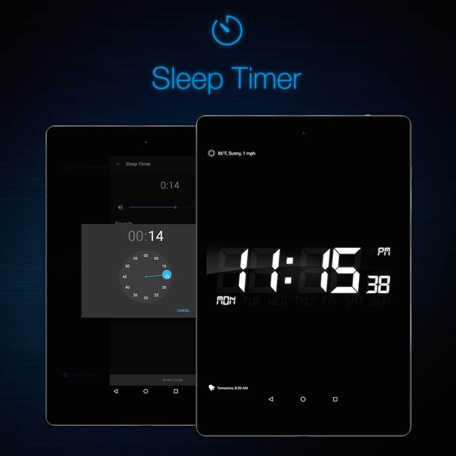 My Alarm Clock – хорошая программа для андроид устройств, которая без проблем сделает из вашего смартфона или планшета отличные "прикроватные" часы. My Alarm Clock содержит ряд возможностей и особенностей, таких как: будильник (с звуковым сигналом вашей любимой мелодии), информация о погоде, таймер сна, затемнение экрана и многое другое. Приятных пробуждений!