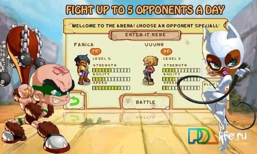 В игре вам не придется бесконечно тыкать в одни и те же кнопки и комбинировать удары, улучая нужный момент. Здесь бой идет без вашего участия, точнее вы смотрите и наслаждаетесь победой! Главное правильно выбрать соперника. Кроме того, повышая опыт, который дается за каждую победу, вы можете и улучшить обмундирование и способности вашего героя, а также открыть новые действующие лица!