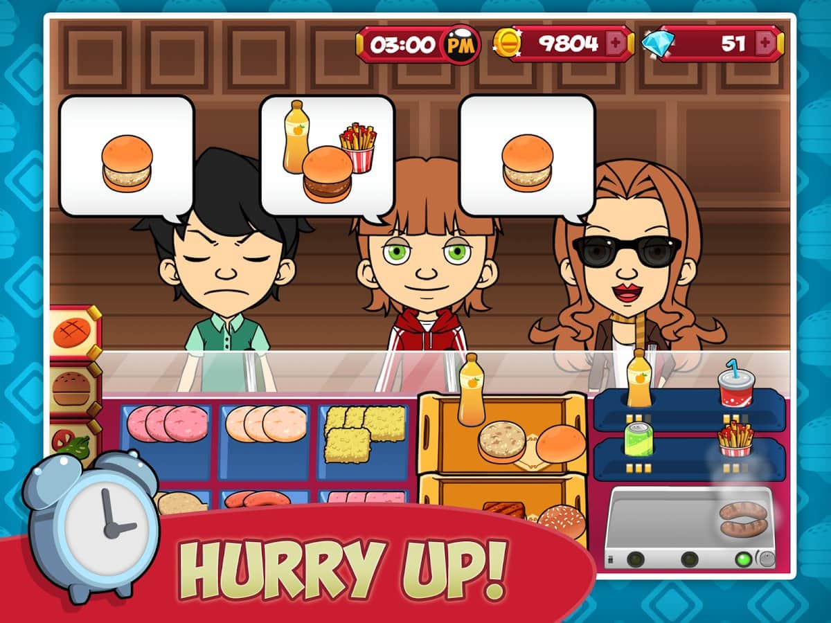 My Burger Shop - Fast Food – игра в которой у вас появиться отличный ресторан быстрого питания. Вы решили открыть свой собственный ресторан, и о нем уже узнал весь город и теперь все торопятся попробовать самые вкусные гамбургеры, чизбургеры и картофель фри. Успевайте обслуживать всех клиентов и угождать их вкусам, добавляя к гамбургерам соленые огурчики, сыр, лук, помидоры, бекон и прохладительные напитки. Зарабатывайте как можно больше денег, чтобы улучшить свой ресторан, приобрести дополнительные ингредиенты и докупить нужные приборы и оборудование. Забавная игра по ведению ресторанного бизнеса.