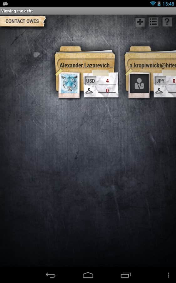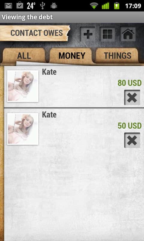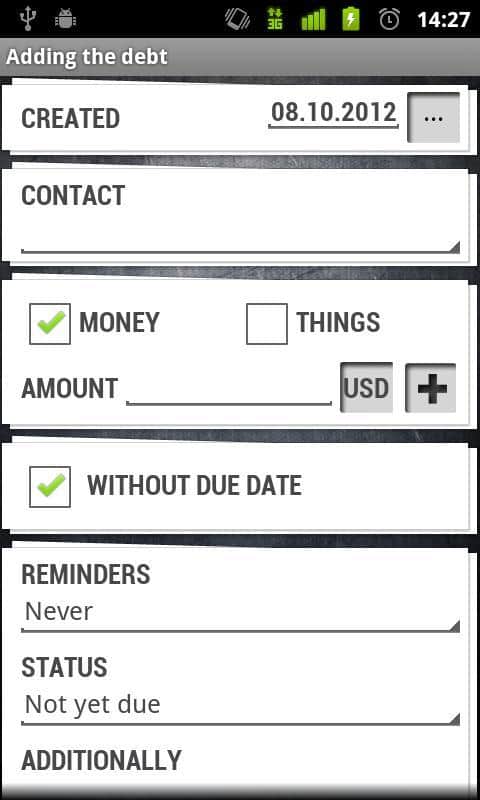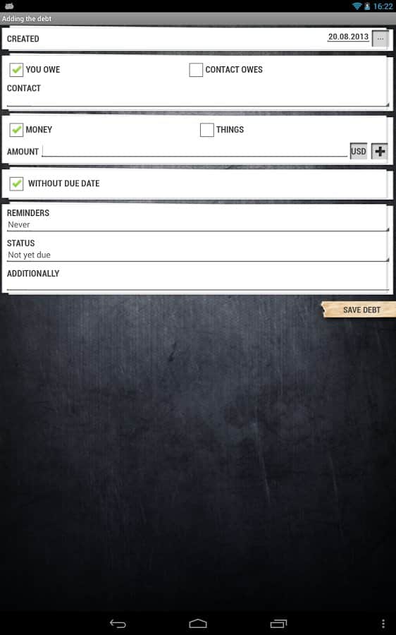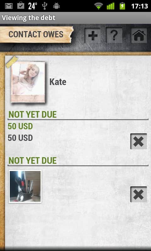 Добавляйте денежные и вещевые долги (вы должны или вам должны).