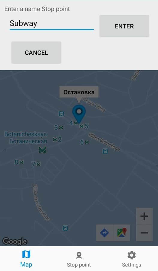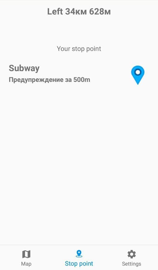 My Destination Вы больше не сможете пропустить свою остановку, просто установите точку остановки на карте и как только вы окажетесь от неё на указанном расстоянии, вы получите уведомление, а вибрация и остановка плеера вас разбудит. Вы можете сохранить ваши частые остановки и не тратить время в будущем на их внесение и просто кликать на кнопку Мои остановки. В своих настройках вы можете изменить расстояние оповещения, по умолчанию оповещение начинается при приближении менее чем на 500м от указанной ранее точки на карте.