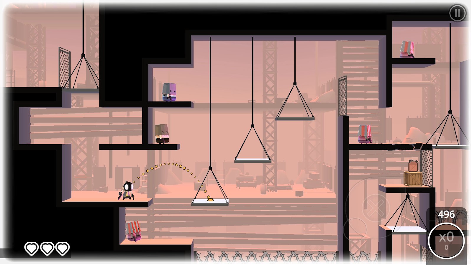 1. **Уникальный геймплей:** Игра сохраняет свою оригинальность, предлагая игрокам возможность выполнять акробатические трюки и стильные перестрелки. Управление с использованием свайпов и касаний обеспечивает высокую динамику.