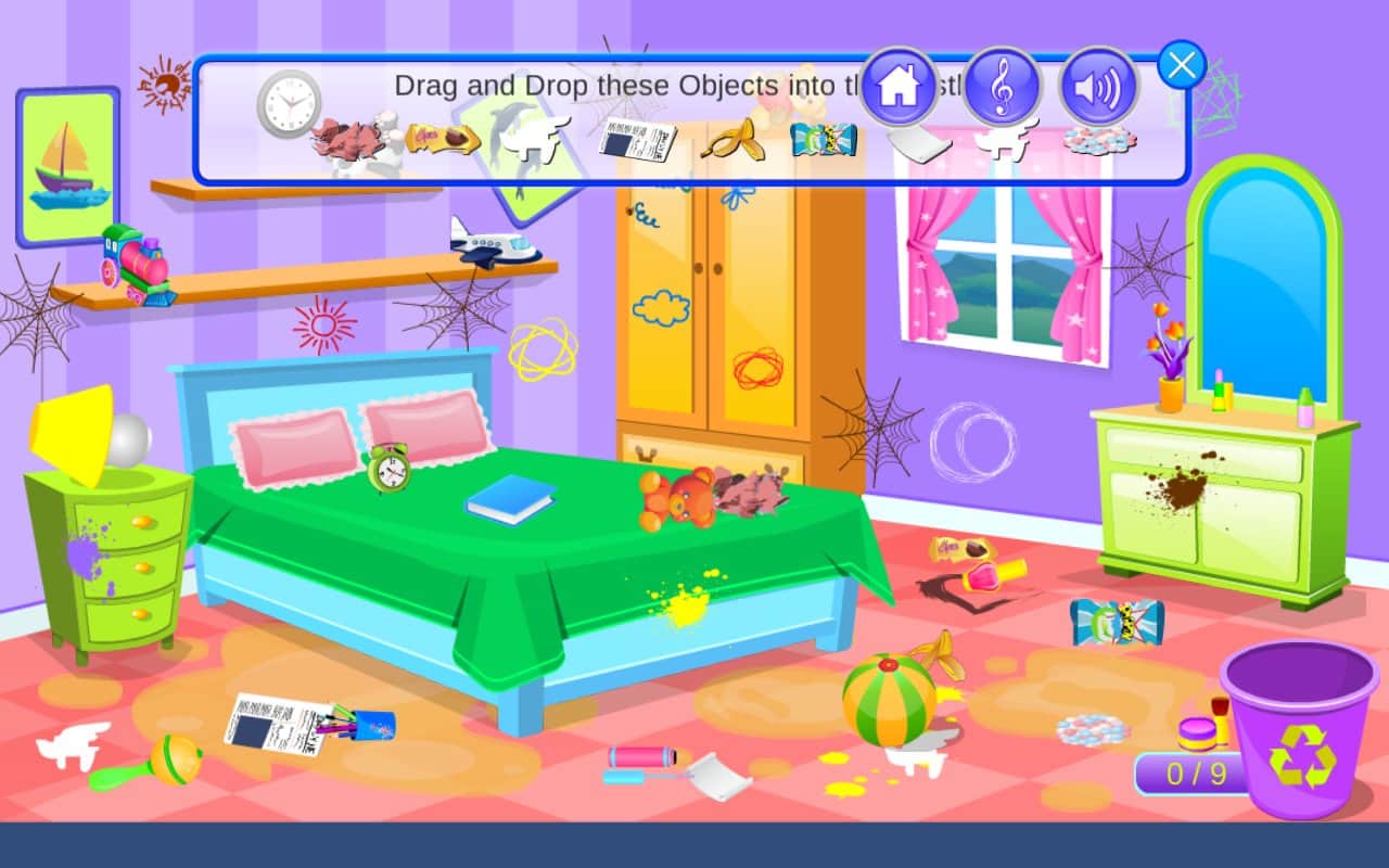 My House Cleanup – симулятор на андроид, где вы будете помогать главной героине убираться дома. В этой увлекательной игре вы будете убираться в спальне, кухне, ванной комнате и в столовой, а также кухне и менять воду в аквариуме. Уборка в доме не когда не была настолько увлекательной как в этой игре. Начните свою уборку со спальни и уберите разбросанные повсюду бумажки, фантики и игрушки. Уберите паутину и протрите пыль, а также не забудьте и про другие комнаты ведь мама героини только что закончила готовить обед и ей потребуется ваша помощь в уборке кухни. Чистите аквариум и меняйте в нем воду, а также украшайте его различными ракушками и игрушечными домиками.