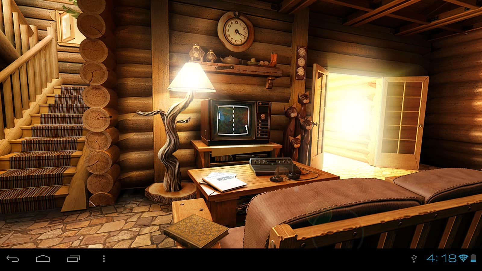 My Log Home iLWP – шикарные живые обои для андрод устройств от разработчика 10ravens и дизайнеров журнала My Home 3D. Скачайте и установите эти обои на экран своего смартфона/планшета и перенеситесь в домик лесника с атмосферой тепла и уюта. Дом разделен на несколько частей, каждая из которых хорошо освещена и наполнена своим интерьером. Все Есть возможность взаимодействия с предметами, а так же можно ставить на картинах свои изображения и фото.