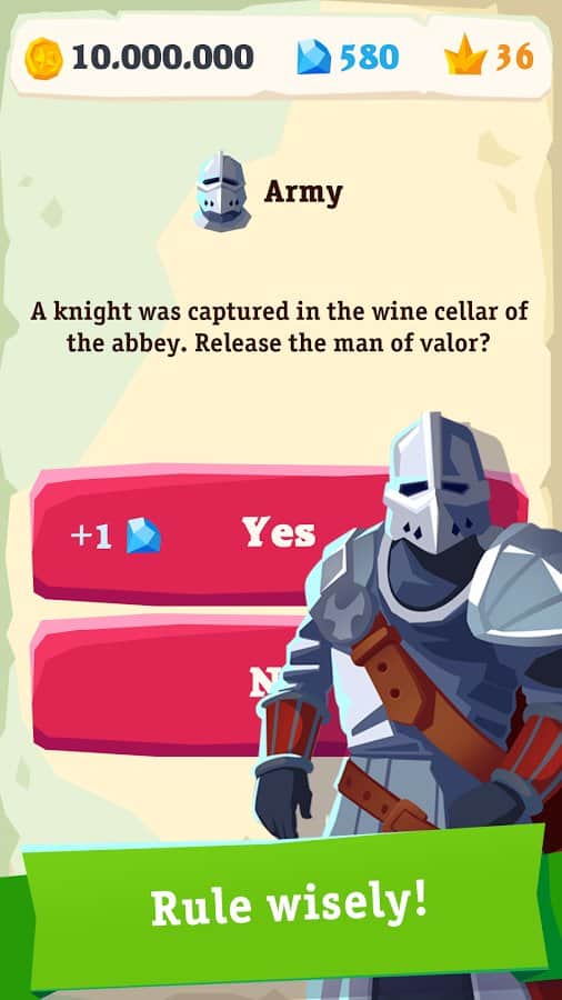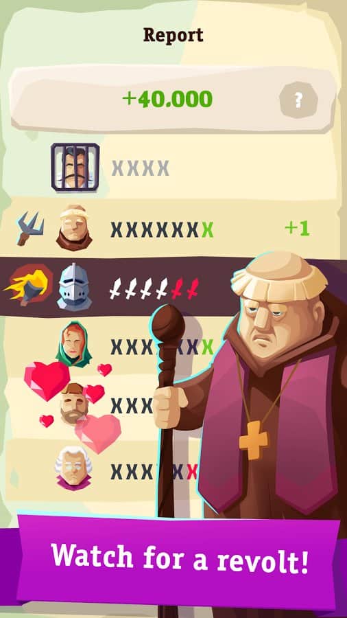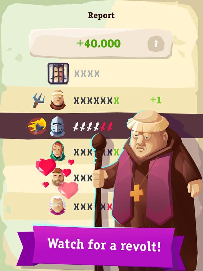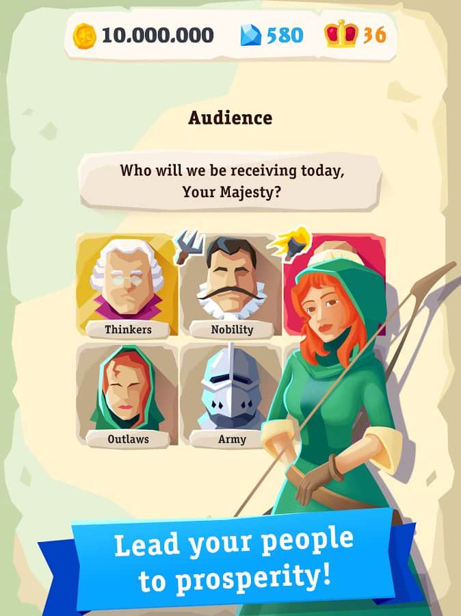 My Majesty – захватывающая стратегия на андроид, где вы станете правителем огромного королевства. В этой игре вы сядете на трон и будете править империей, принимая мудрые решения и решая насущные проблемы. Вашей главной задачей будет угодить вашим подданным, инквизиции и дворянам при этом не потерять трон. Отдавайте различные приказы и повеления и не забывайте советоваться с церковью по различным вопросам. Нападайте на соседние территории, собирайте огромные походы и паломничества в другие страны. Не позволяйте дворянам командовать вами и не давайте им не заслуженные награды и звания. Принимайте взвешенные решения, выигрывайте войны, побеждайте чуму и пожары, а также не забывайте строить свой фамильный замок. Встречайтесь с исторически значимыми персонажами и учеными.