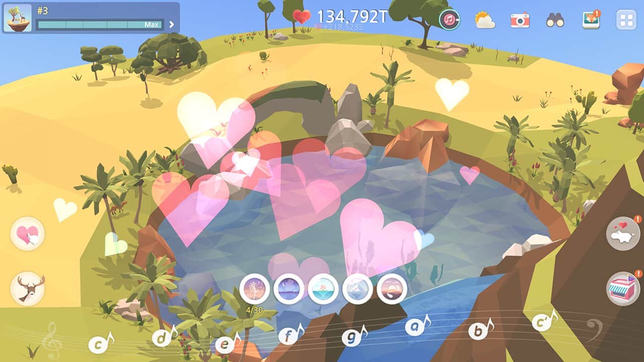 My Oasis - Tap Sky Island – музыкальный кликер на андроид, где вы будете создавать свой неповторимый остров. В этой музыкальной игре вашей задачей будет касаться экрана своего телефона или планшета для того чтобы получать сердечки, которые вы сможете потратить на приобретение предметов для своего острова. По ходу игры вы сможете менять рельеф местности и добавлять новые элементы, такие как деревья и животные. В этой игре вы сможете подбирать музыкальные ноты и менять климат на своем острове, а также сделать утро или ночь. Взаимодействуйте с различными предметами и объектами, нажимая на животных или растения и получая ценные награды. Всего в игре представлено более 250 уровней, пройдите их все и создайте свой невероятный оазис.