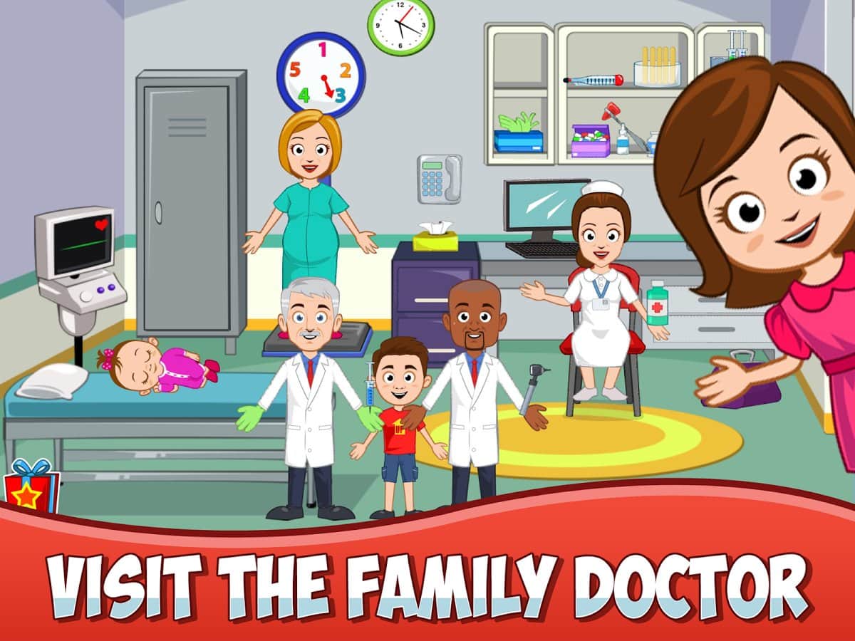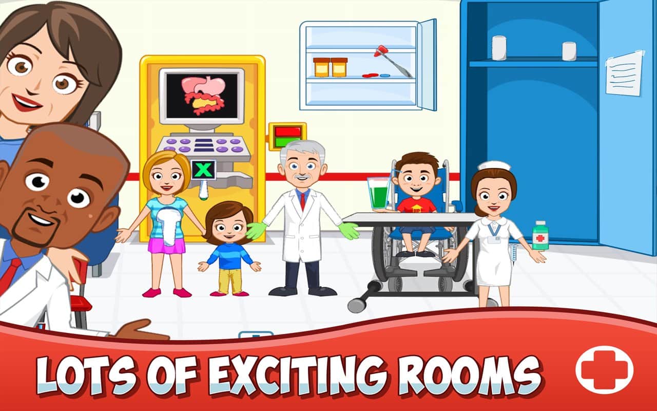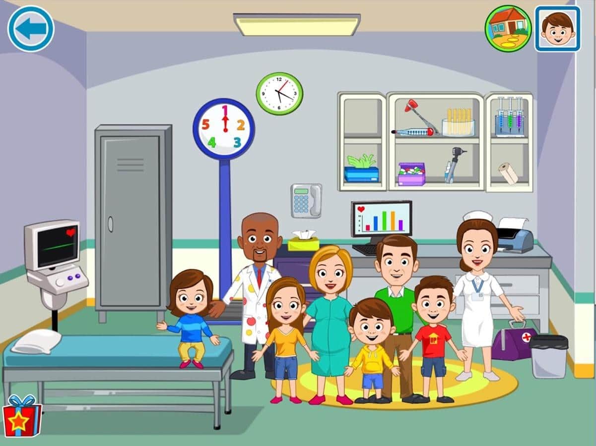 My Town : Hospital – увлекательная игра для детей в возрасте от 3 до 12 лет. В этой игре ваш ребенок вместе с игрушечной семьей окажется в больнице и будет ее исследовать. Отправиться вместе с мамой на рентген и посмотрит нового народившегося малыша на мониторе, пройдет полный осмотр семейного врача и загляните в комнату только что родившихся детей. Помогите маме, которая нуждается в вашей помощи помыть и одеть ребенка, а также поиграть с ним. В этой игре ваш ребенок откроет для себя семь различных палат в больнице расположенных на двух этажах. Познакомиться с хирургом, семейным врачом, медсестрой и другими персонажами игры включая беременную маму. Посетите сувенирный магазин и получите в вознаграждение цветы и воздушные шары. Вес файла кстати 36.6)