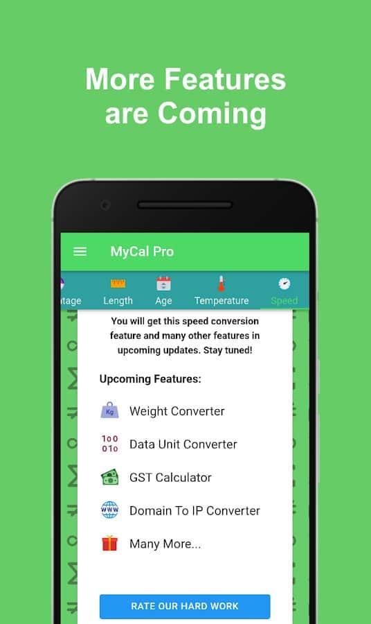 При помощи приложения MyCal Pro вы сможете не только производить математические расчеты, то и конвертацию нескольких параметров.