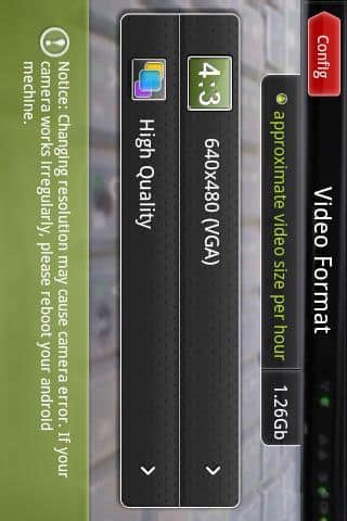 возможность настройки временной папки, разрешения и качества записываемого видео, яркости экрана;