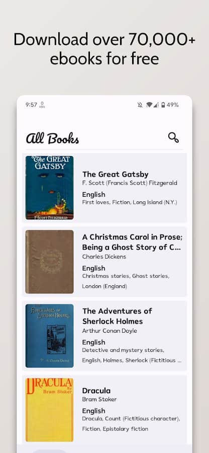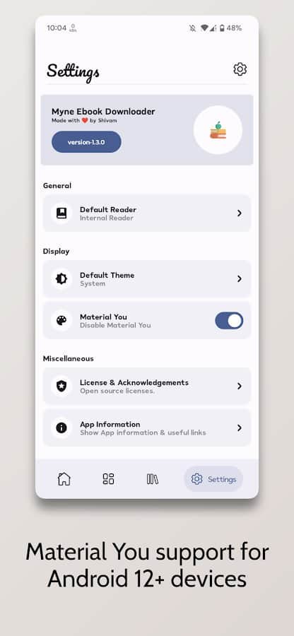Myne - это мобильное приложение для устройств на базе android с открытым кодом, позволяющее пользователям читать и скачивать более 70000 книг из Библиотеки Проекта Гутенберг. Библиотека содержит книги, находящиеся в общественном достоянии те, авторские права на которые уже истекли. Интерфейс приложения выполнен в соответствии с концепцией материального дизайна от компании Google, что делает его простым и понятным для пользователей. С его помощью вы можете просматривать и загружать книги на разных языках, которые постоянно обновляются и дополняются. Кроме того, Myne предлагает встроенный ридер для электронных книг и совместим со сторонними ридерами. Он также поддерживает оформление Material You для устройств на Android 12 и старше и доступен в светлой и тёмной темах.