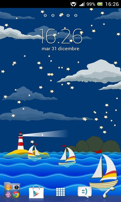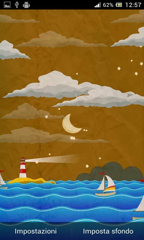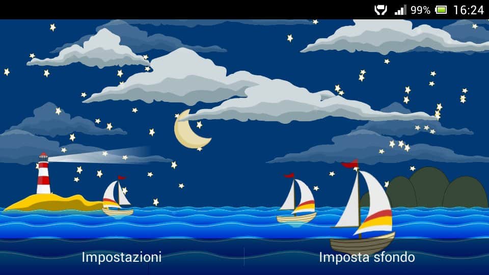 MyOcean HD – красивые живые обои, которые перенесут вас на море где вы будете наблюдать как парусник плывет по волнам. Любуйтесь красивыми закатами, плывущими облаками и неповторимо красивым звездным небом. Обои порадуют вас огромным количеством настроек, с помощью которых вы сможете менять тип и качество бумаги, количество звезд, сделать их мерцающими, добавить детали пейзажа, увеличить или уменьшит контрастность картинки, а также включить прозрачность моря. Сделайте свои живые обои уникальными и проявите всю свою фантазию, добиваясь непревзойденного результата картинки.