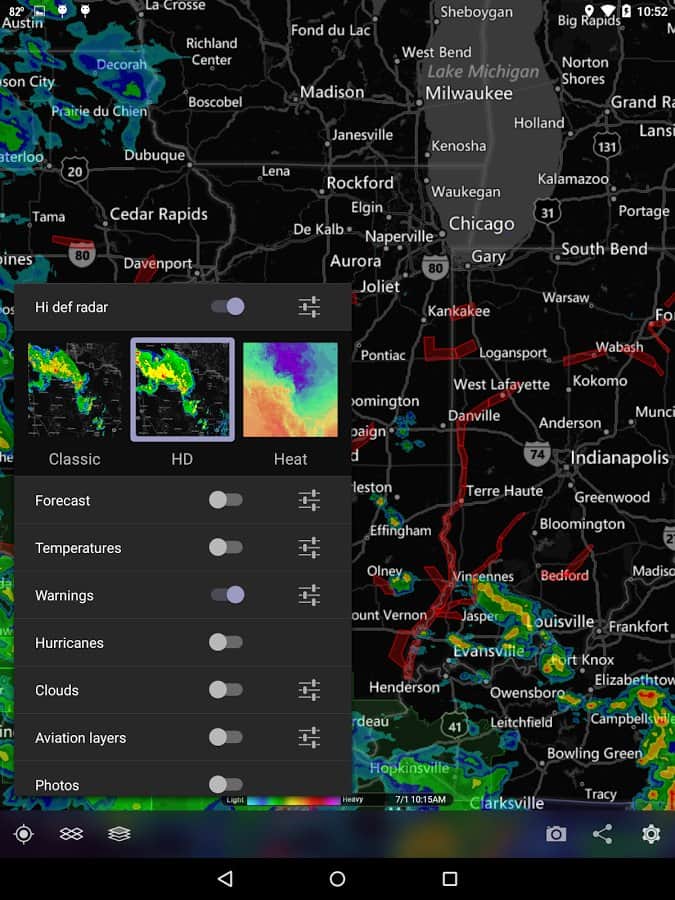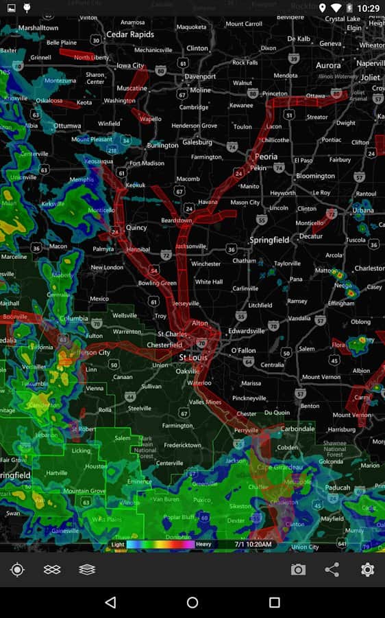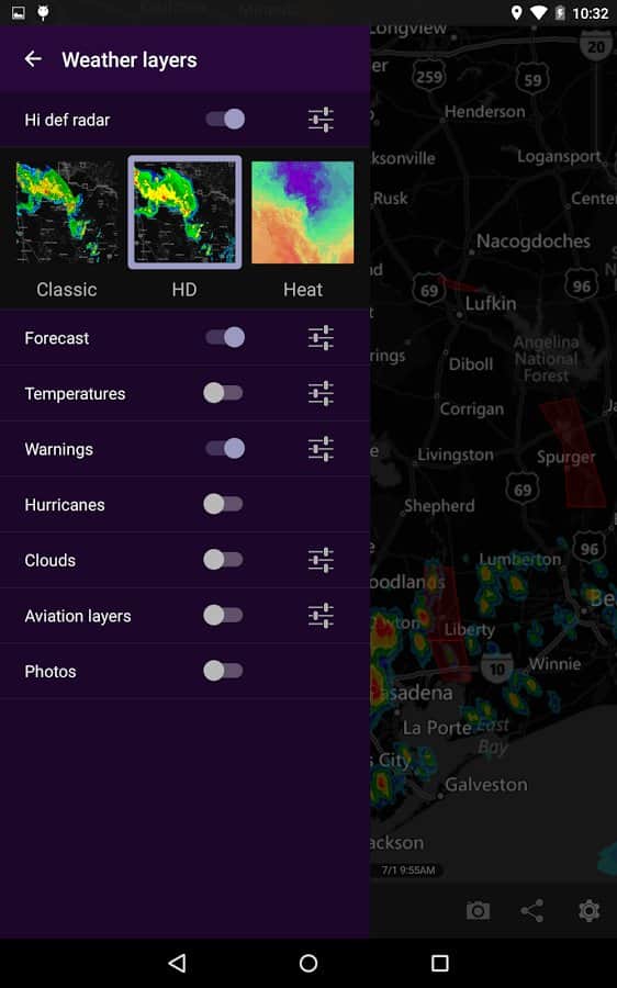 MyRadar Weather Radar - Старые приложение для прогноза погоды которые показывали лишь некоторые значения уже давно устарели, и на смену им активно создаются вот такие вот новенькие приложения в которых вы можете не только узнавать погоду но и лично смотреть на то как она меняется. Видеть всё это вы будете с помощью карты мира и в зависимости от выбранного вами фильтра будет отображаться и карта погоды, будь то направление и сила ветра или же уровень осадков или же температура в каком либо регионе.