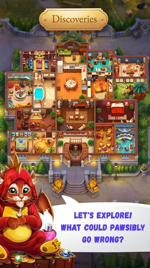 Mystery Manor: hidden objects - приключенческая игра главным героем которой стал сообразительный котик по прозвищу Джошуа. Наш герой остался одни, так как его хозяин отправился в путешествие, а согласно сюжету особняк в котором проживает мохнатый буквально кишит загадками, привидениями и прочими мистическими явлениями, но рыжий персонаж вполне дотягивает до класса детектива и вам необходимо помочь ему в разгадке тайн. Игровая механика в свою очередь сочетает в себе элементы три в ряд и квестовой игры из серии поиск предметов.