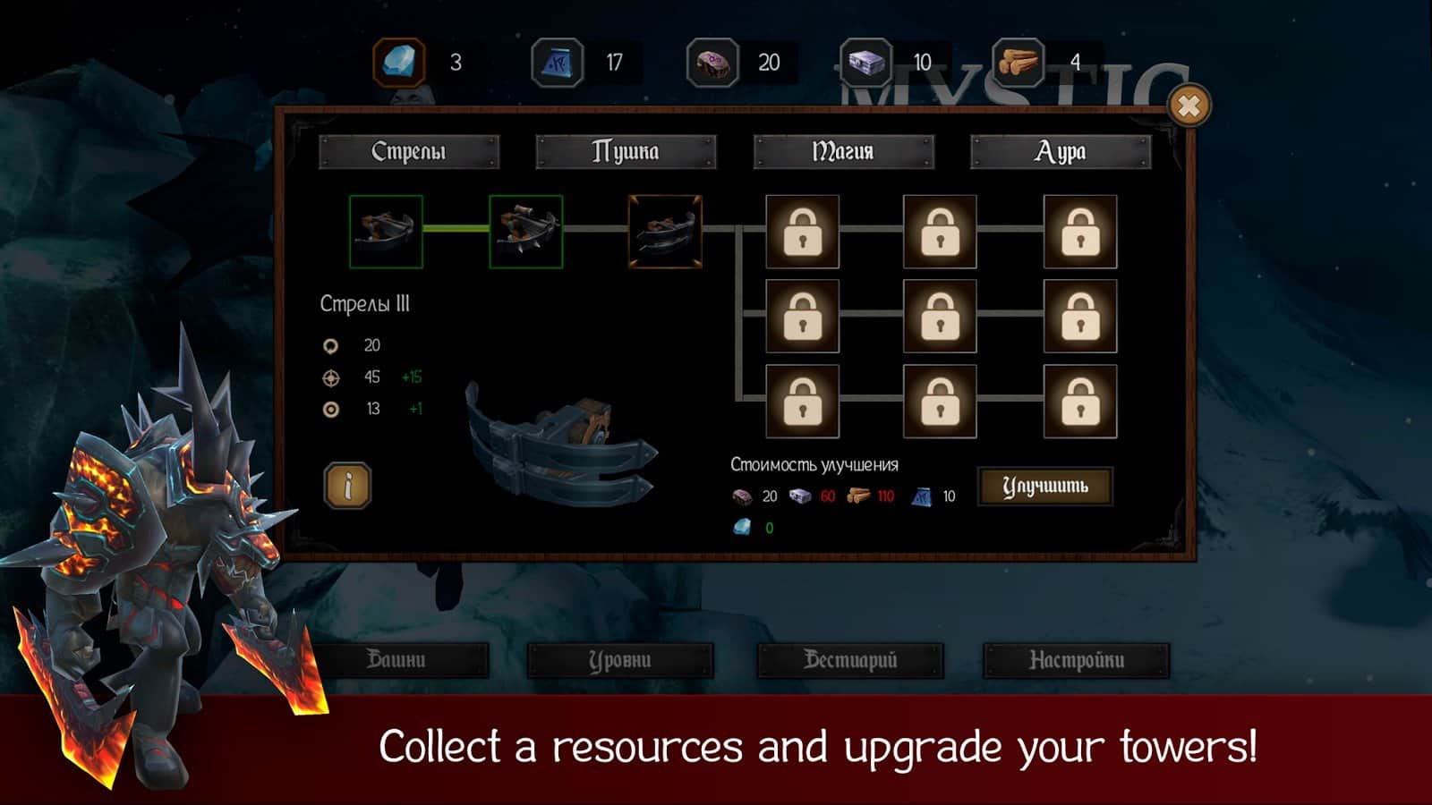 Mystic Defense - Великолепная игра в старом добром жанре защита башни. Эта игра находится в раннем доступе, но уже успела завоевать сердца множества игроков. Её отличительной чертой является то насколько много разнообразия, уровней, врагов и множество другого в ней представлено. Вы сможете не только выбирать различные варианты башен, но так же должны будете составить свою стратегию, ставить всё наугад не выйдет. К тому же в ней полностью отсутствует донат, никакого доната. Все игровые предметы открываются сугубо игровым путем, и никак иначе.