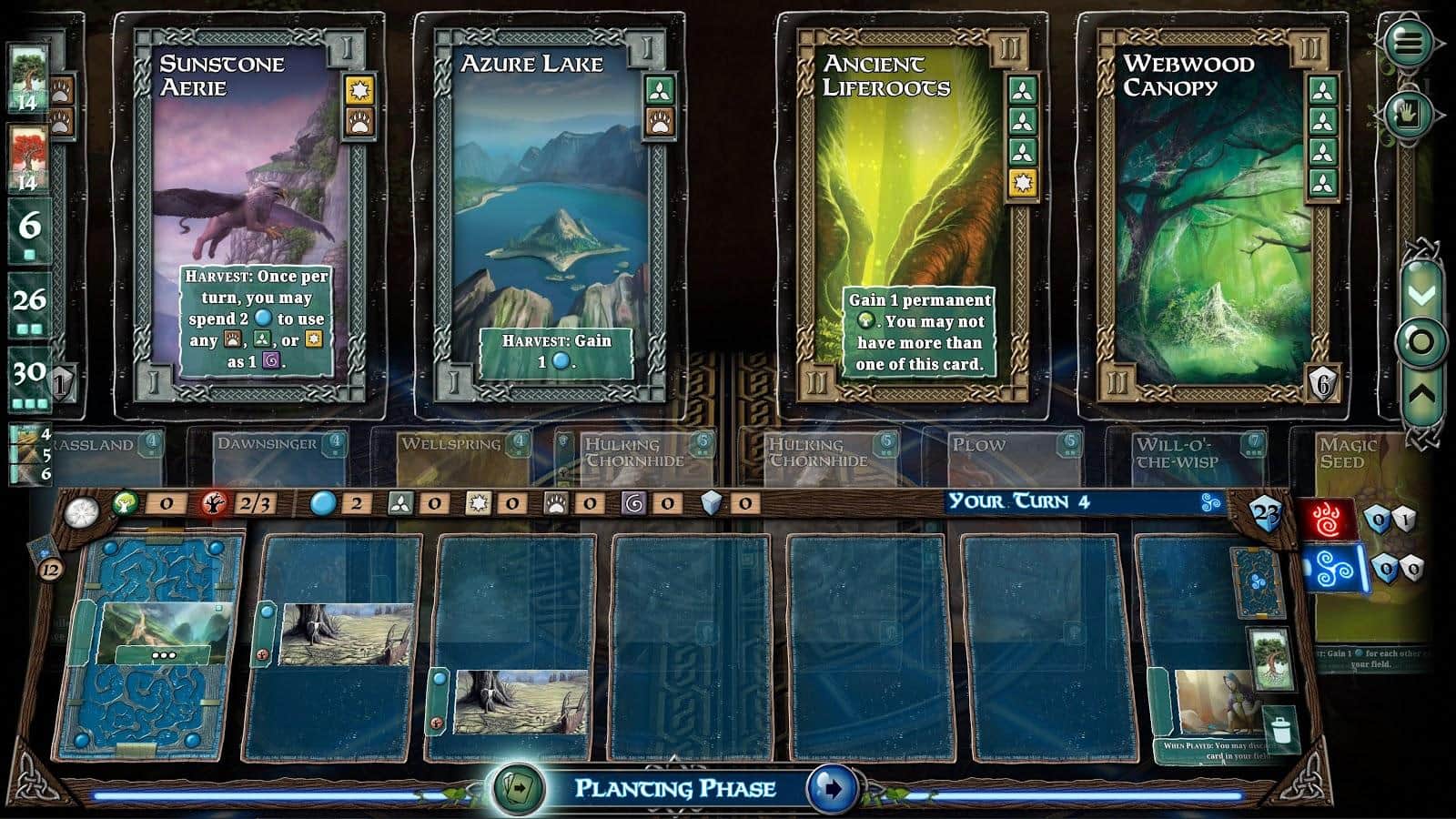 Mystic Vale – карточная игра на андроид, где вы будете снимать проклятье с долины жизни. Сильное проклятье было наложено на ваш мир, услышав призыв духов природы о помощи прибыли кланы друидов, которые способны применить свои умения и исцелить землю. Играйте роль кланов друидов и разыгрывайте карты на игровом поле так чтобы получить полезные карты Вейла. Применяйте свою силу с умом, иначе распад преждевременно завершит ваш ход. Набирайте достаточное количество очков и выигрывайте эту игру. Игра порадует игроков инновационной системой создания карт, которая подарит вам новый опыт игры.