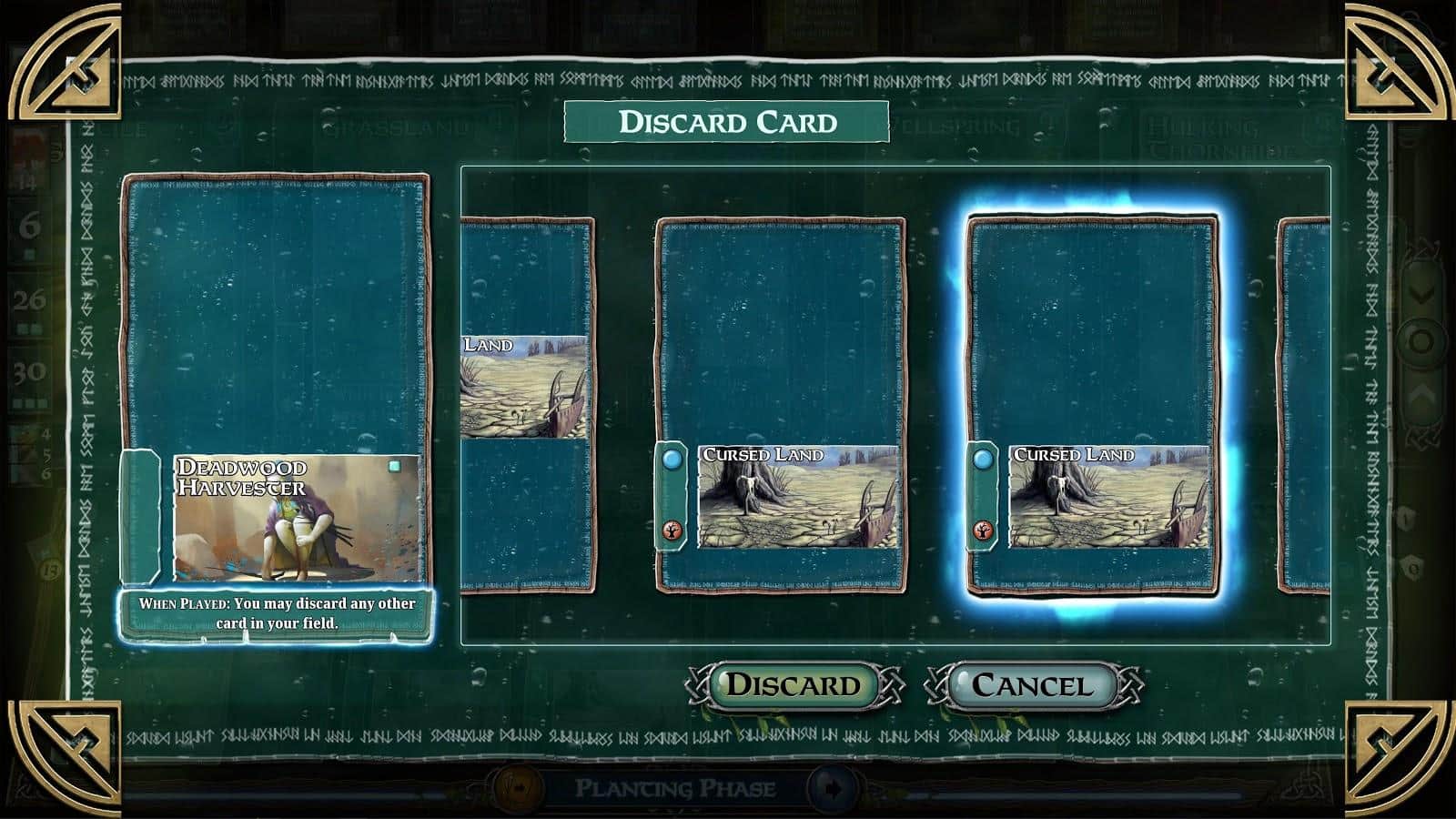 Использование Серебряного Дерева для сброса Карты с вашего Поля во время Фазы сбора урожая, что приводит к потере ресурсов, собранных с этой Карты.
