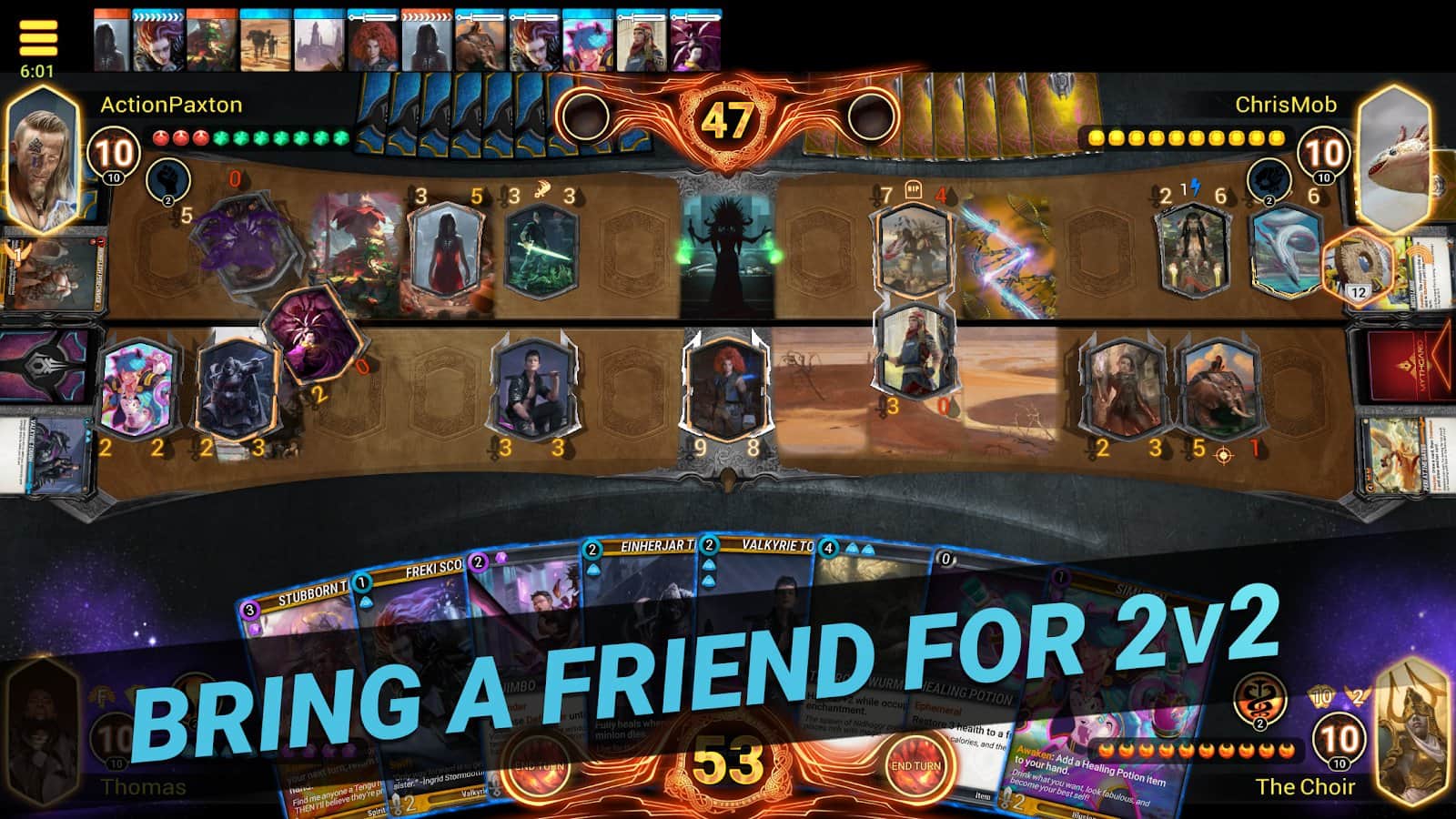 Mythgard – настольная игра на андроид, где вы будете сражаться богами. Боги из древних легенд ворвались в реальный мир, взаимодействуя с новыми технологиями они наполнили планету необъяснимой магией. Выступайте на стороне людей и дайте отпор всем врагам. Положитесь на свою сообразительность и логику и разрабатывайте свою непобедимую стратегию. Соберите свою колоду, которая будет состоять из разных персонажей, которые будут обладать уникальными умениями и способностями. Используйте в бою с богами заклинания, миньонов, чары и артефакты. В игре вы найдете более 400 карт, несколько режимов игры и увлекательный геймплей.