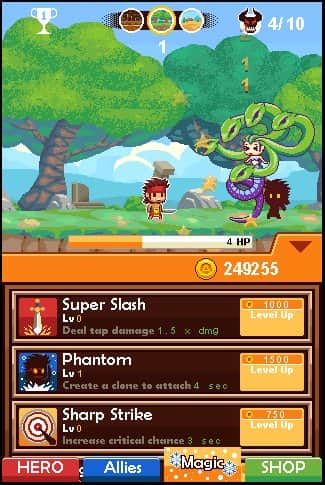 Myths N Heros : Idle Games – игра ан андроид, где вам предстоит провести своего героя по многочисленным уровням где ему предстоит сражаться с монстрами. Ваш герой очень отважный малый, но ему нужна ваша помощь, нажимайте на экран как можно чаще и тогда воин будет наносить сокрушительные удары. Чем чаще вы будете нажимать, тем больше получиться ударов и быстрее сокрушиться враг. В этой бесконечной игре вас ждут многочисленные монстры, которые будут появляться после поражения предыдущего. Призывайте к помощи Афины в сложных ситуациях, а также нанимайте союзников для облегчения участи героя. По ходу игры развивайте своих персонажей, добавляя им силы и оружия.