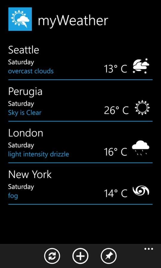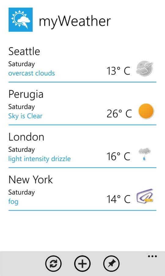 myWeather - очень простое и быстрое приложение для определения погоды для windows phone. Оставайтесь всегда в курсе прогноза погоды с этим удобным и легки приложением, оно обязательно пригодится вам дома и в поездках.