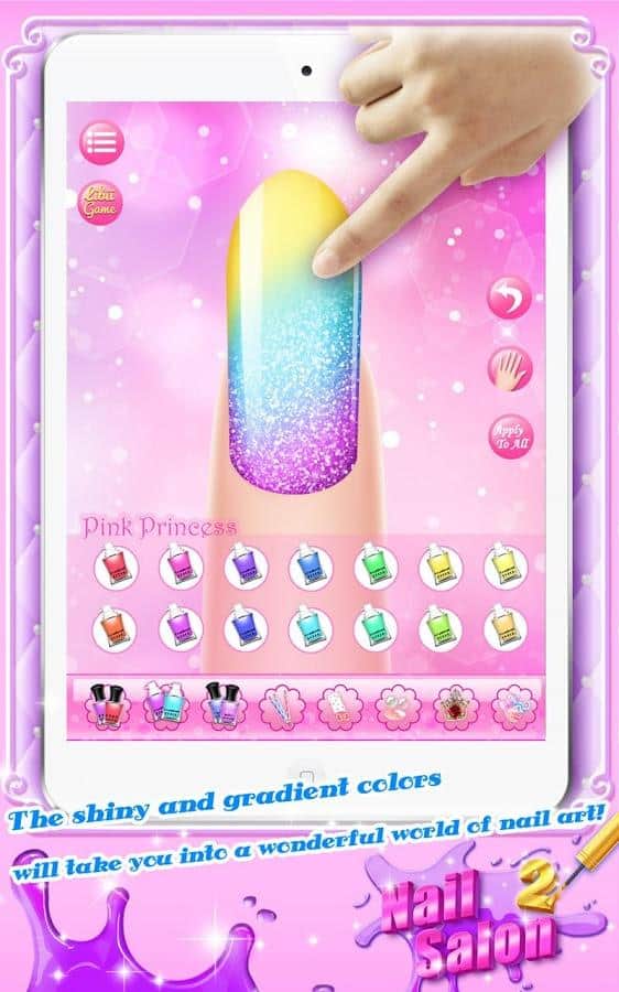 Nail Salon 2 - интересная игра для девочек, которые любят делать маникюр и хотят стать дизайнерами. Это вторая часть игры с еще более расширенными возможностями для вас. Здесь вы сможет создать уникальный маникюр для своей модели, украсить его разнообразным дизайном, а также дополнить его, одев кольца, браслеты и украшения. В этой игре вам доступны новые функции объединение маникюра и рук, а еще вы сможете выставить свою модель на конкурс, и в конце каждой недели будут подводиться итоги и вы сможет получить награду.