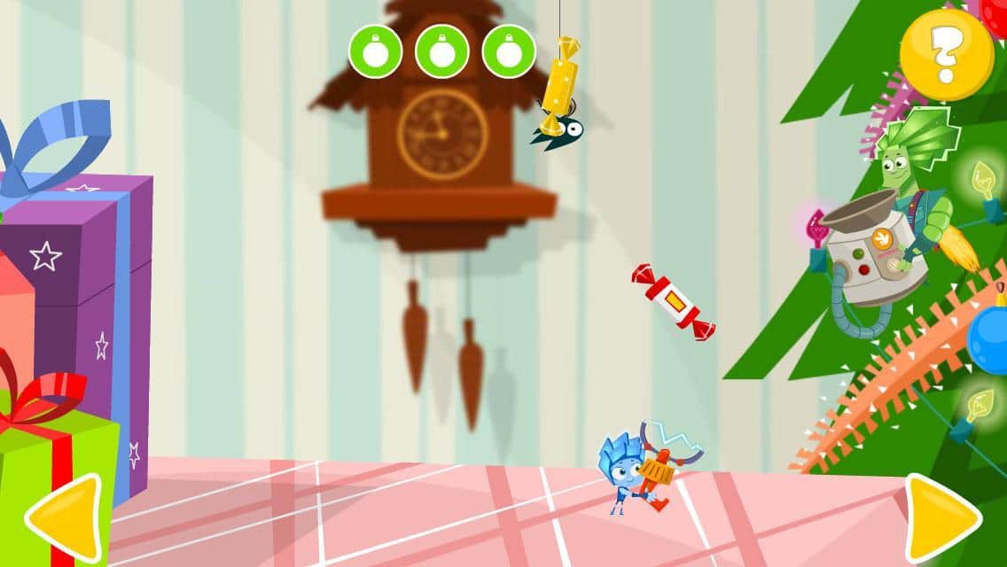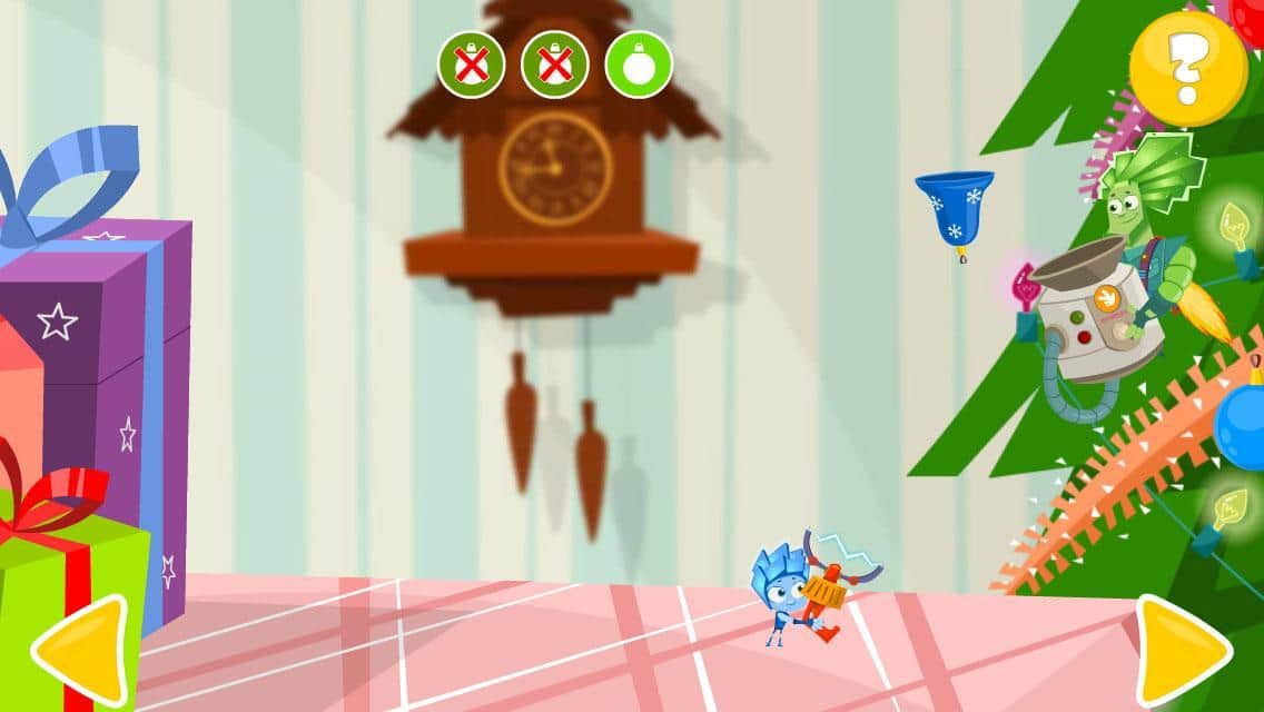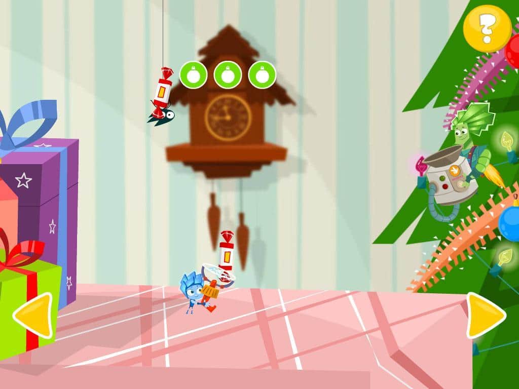 Наряди Ёлку Фиксиклуб - новогодняя игра, в которой вы будете наряжать елку вместе с Фиксиками. Скоро новый год и наши главные герои решили наряжать елку, но это у них плохо получается, им постоянно мешает Жучка и из за этого игрушки падают и разбиваются. Помогите Фиксикам нарядить елку при этом не разбив не одной новогодней игрушки. С помощью специальных приспособлений несите аккуратно игрушку и направляйте ее прямо на елку. Будьте внимательны и справьтесь с поставленной задачей на отлично, чтобы Фиксики смогли отметить новый год с красивой елкой.